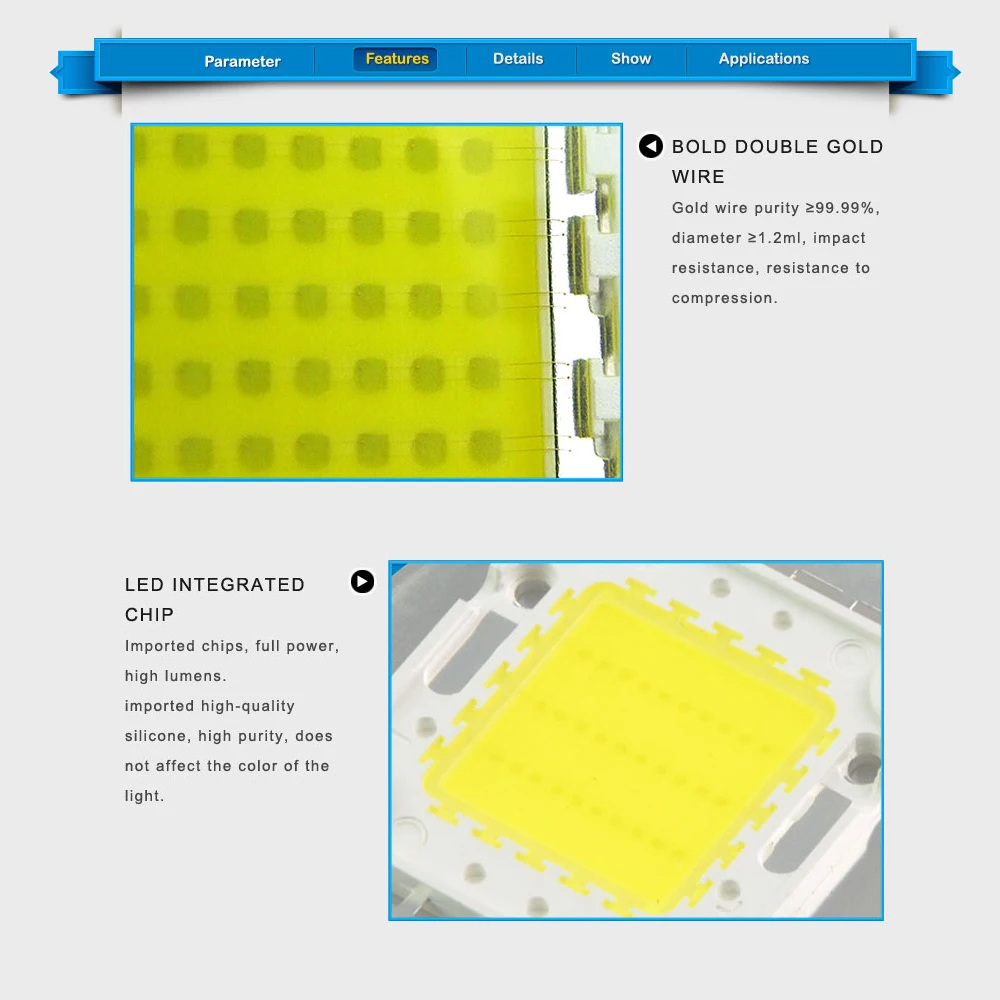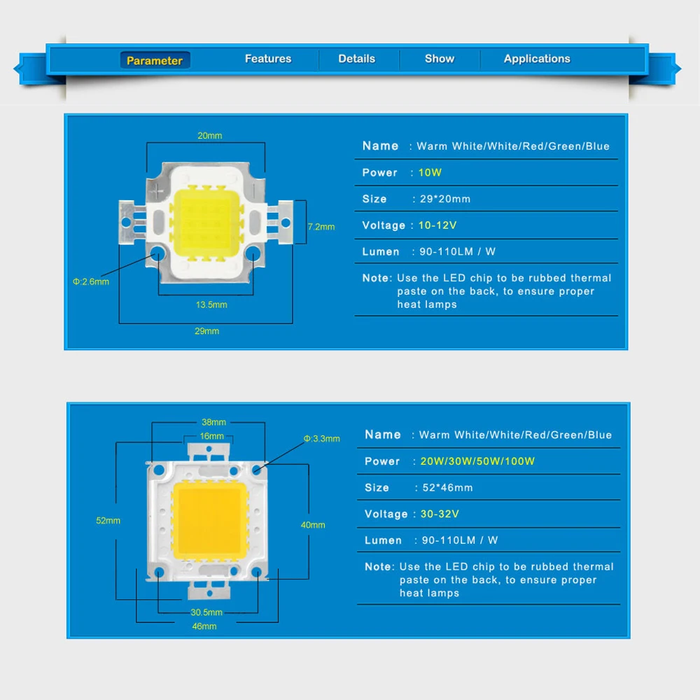 Светодиодные чипы 10 Вт, 20 Вт, 30 Вт, 50 Вт, 100 Вт, COB Светодиод...