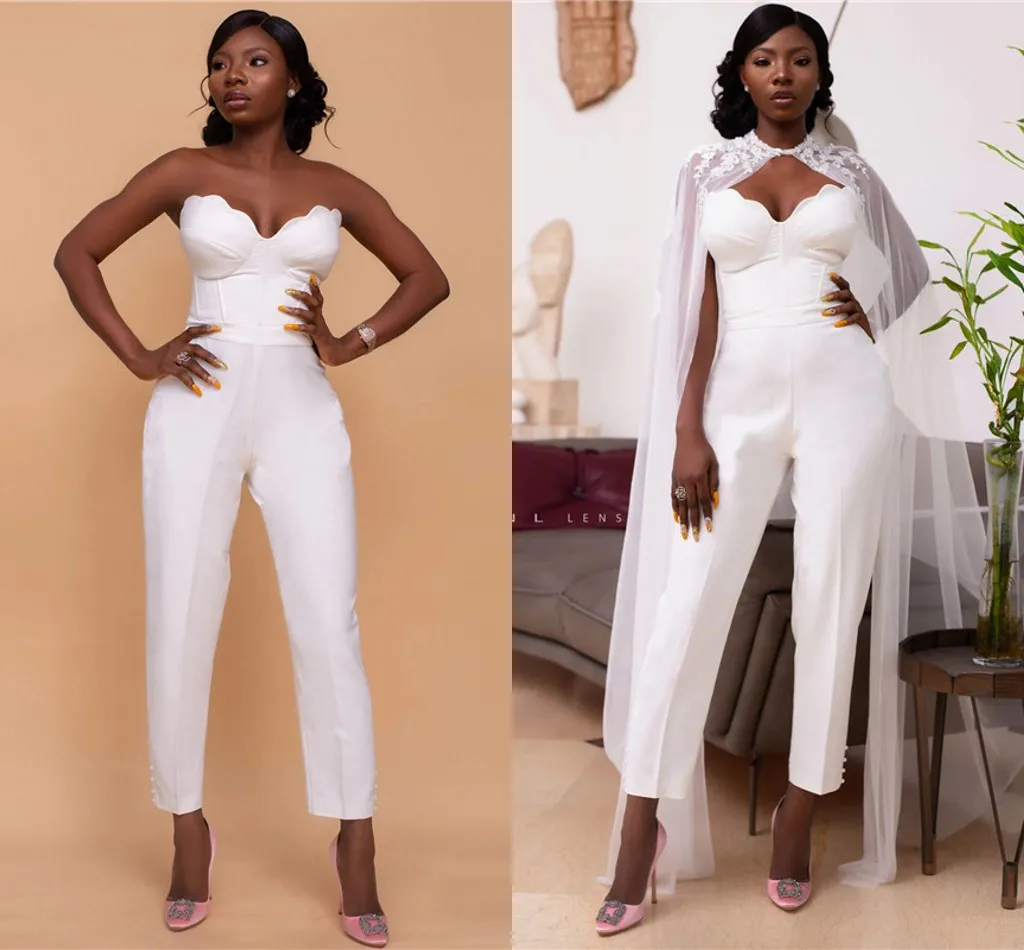 Свадебные платья в африканском стиле, 2021, свадебные комбинезоны с накидкой, милое платье для невесты, комбинезон для приема, женские брючные костюмы, Vestido De Noiva