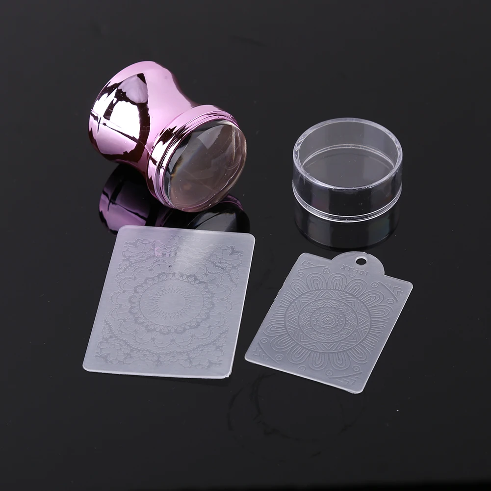 5 цветов зеркальный ногтей стемпер Прозрачная силиконовая головка маникюрный скребок лак шаблон для переноса изображений наборы с крышкой пластина для стемпинга для нейл-арта