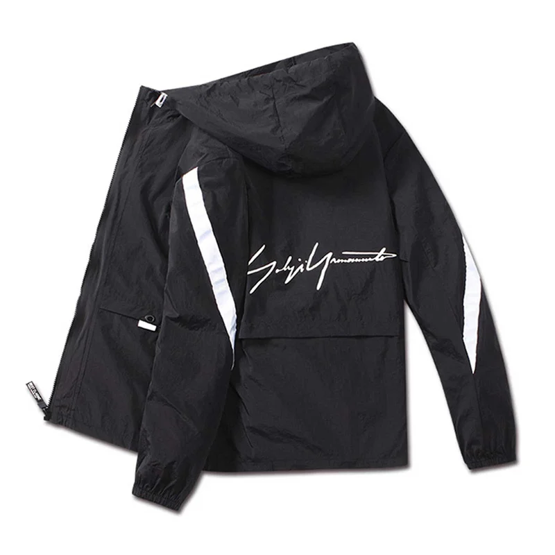 Мужская тонкая ветровка с капюшоном, легкая Повседневная куртка-бомбер на молнии, полупрозрачная одежда с надписью для защиты от солнца