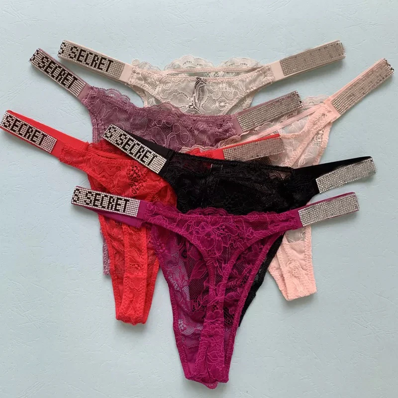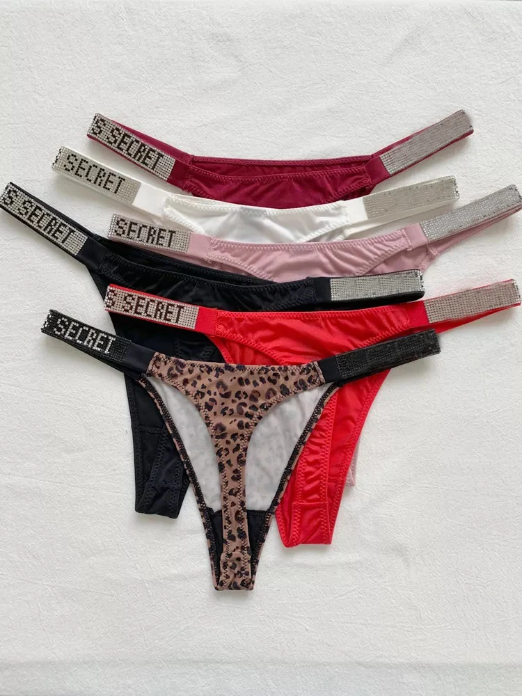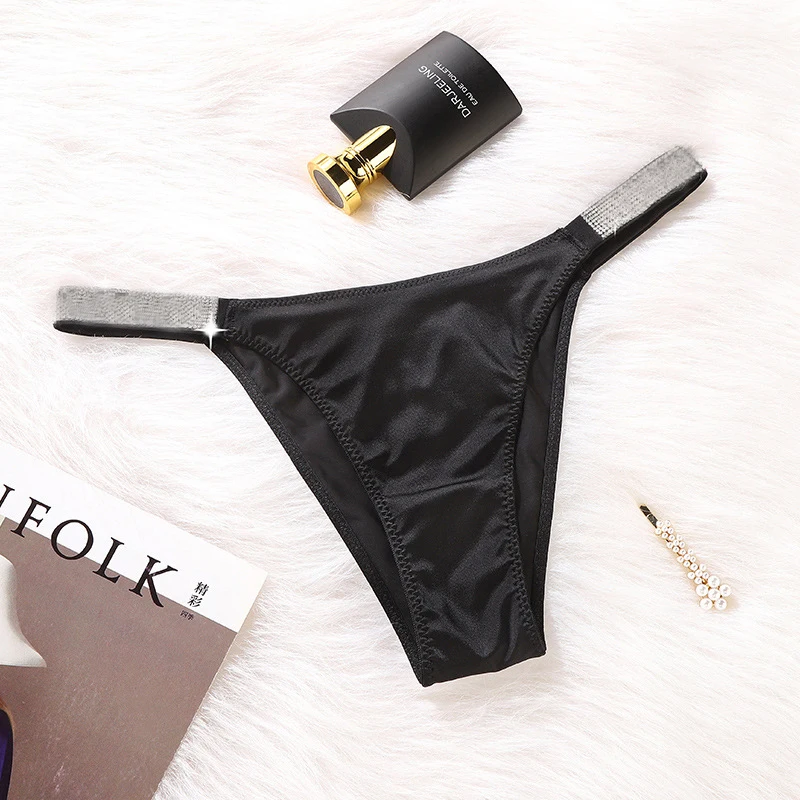 Стринги женские шелковые бесшовные, розовые, с надписью, стразы