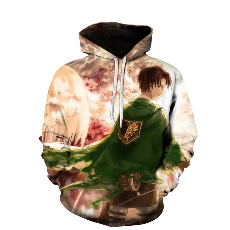 Толстовка мужская с капюшоном, свитшот с 3D-принтом в стиле японского аниме атака на Титанов Эрена Леви Микаса