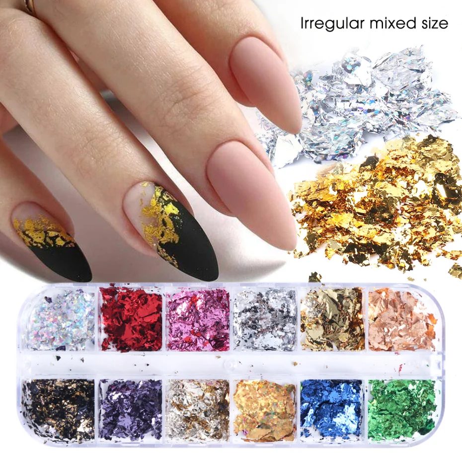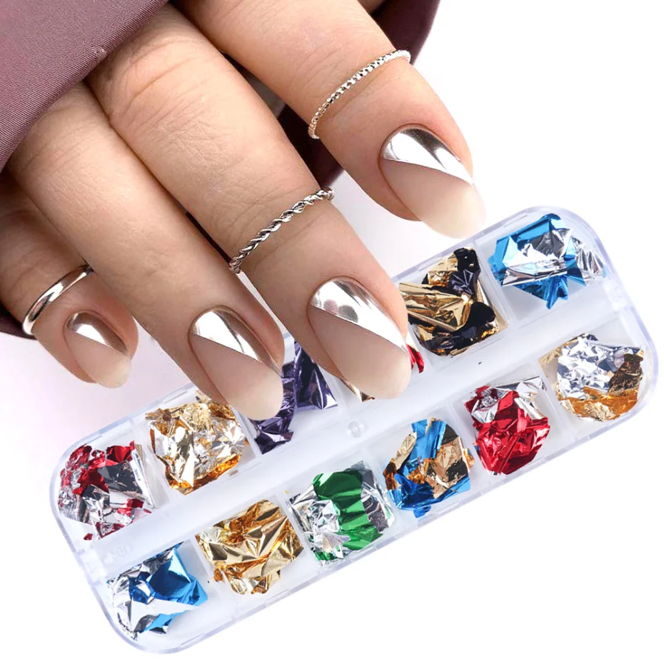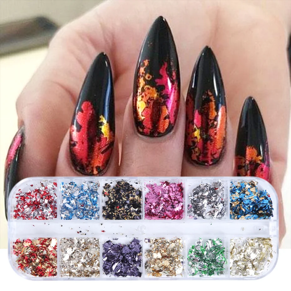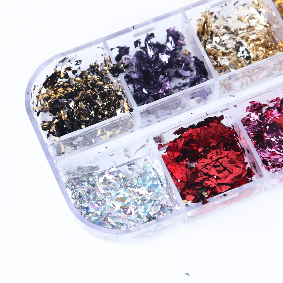 1 коробка фольга для ногтей Блестки Серебряный Золотой неровный алюминиевый хлопья голографический дизайн маникюра наклейки украшения LA950