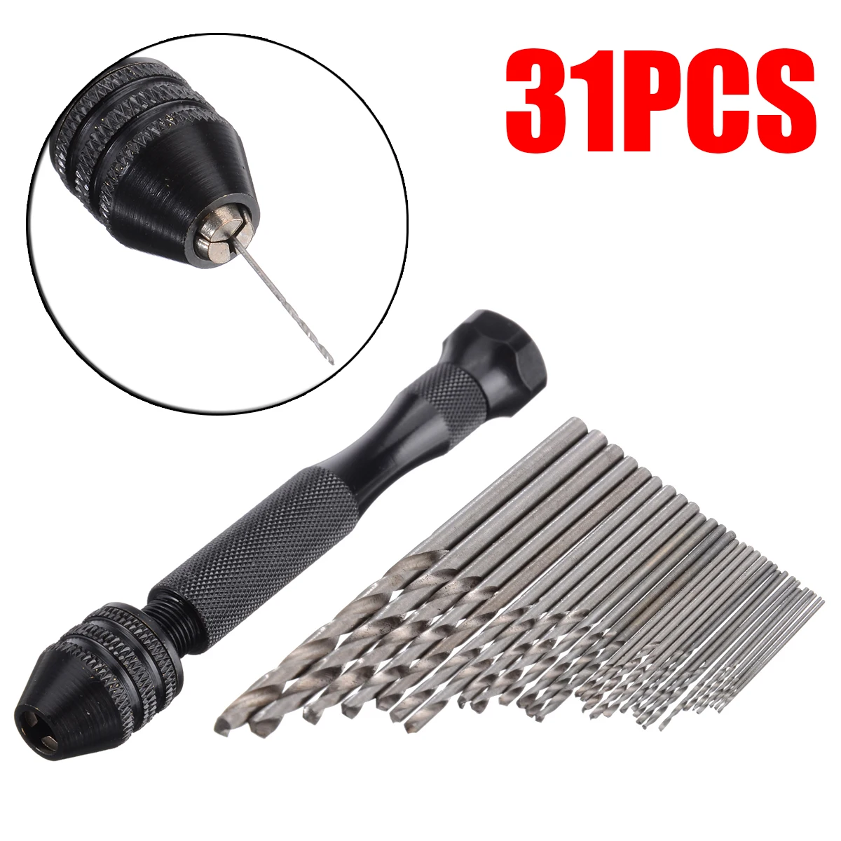 31 шт., ручное сверло, набор прецизионных миниатюрных спиральных сверл сделай сам из быстрорежущей стали, 1 шт., черное ручное спиральное сверло + 30 шт., набор спиральных сверл 0,5 мм-3 мм