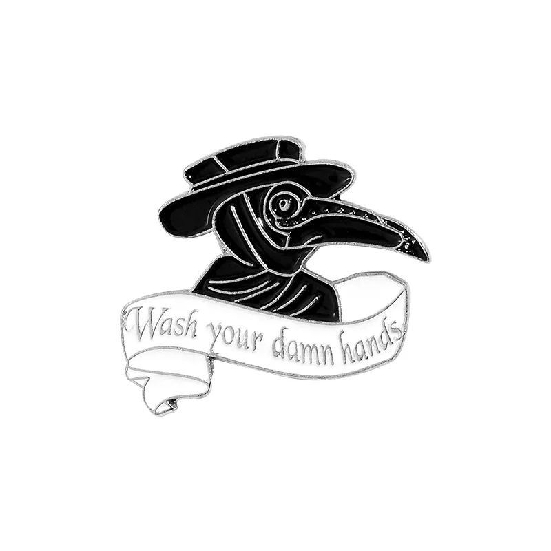 Готическая маска ворона металлическая брошь с эмалью, Вымойте руки,...