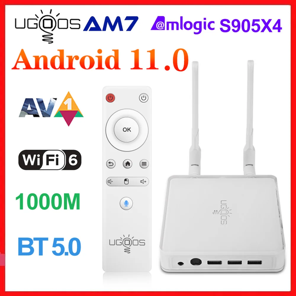 ТВ-приставка Android 11 Amlogic S905X4 UGOOS AM7 медиаплеер DDR4 4 ГБ ОЗУ 32 Гб ПЗУ поддержка AV1 CEC HDR WiFi6 1000M BT5.0 OTT