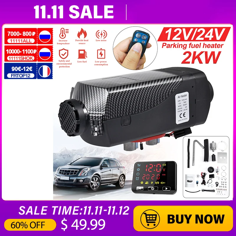 Автономный обогреватель, 2 кВт, 24 В, 12 В, с ЖК-дисплеем, с низким...