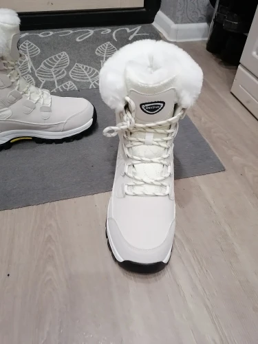 Хорошие ботинки, мягкие, с толстым слоем меха. На свои 25.5см заказала 41 по таблице, конечно велики где то на пол размера, размер. Придется носить с носком потолще, что я никогда не делала, мне хватало тепла меховой подкладки. В верхней части ботинка шнуровка заканчивается довольно низко и голяшка как бы,, болтается,,, что не очень комфортно, сапог не фиксируется на ноге как бы хотелось, так и хочется зашнуровать ботинок ещё на один раз выше. Но это, может быть, только для меня. А так ботиночки не скользят( проверила), красивые, не хлипкие. Рекомендую.