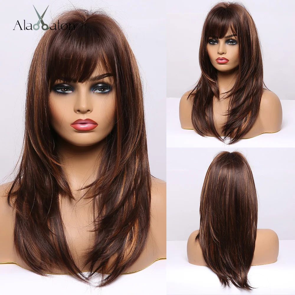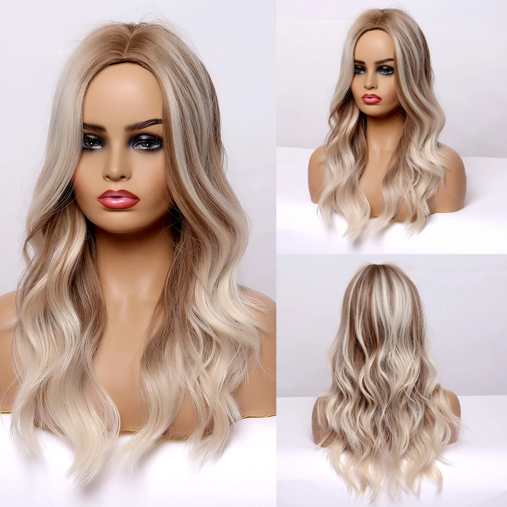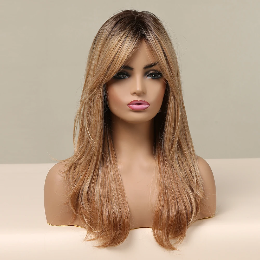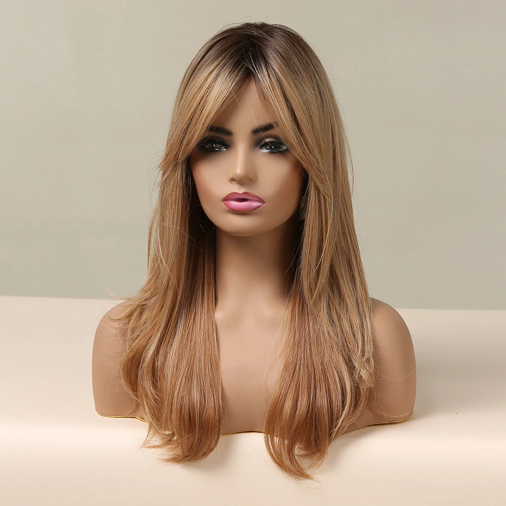 Длинный натуральный волнистый парик ALAN EATON для женщин, черные, коричневые, золотые, светлые синтетические парики с челкой, термостойкие волосы для косплея
