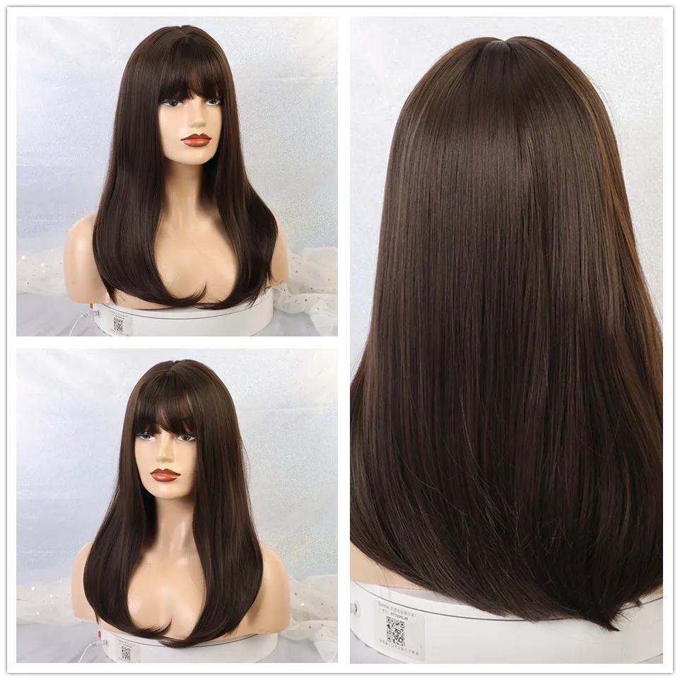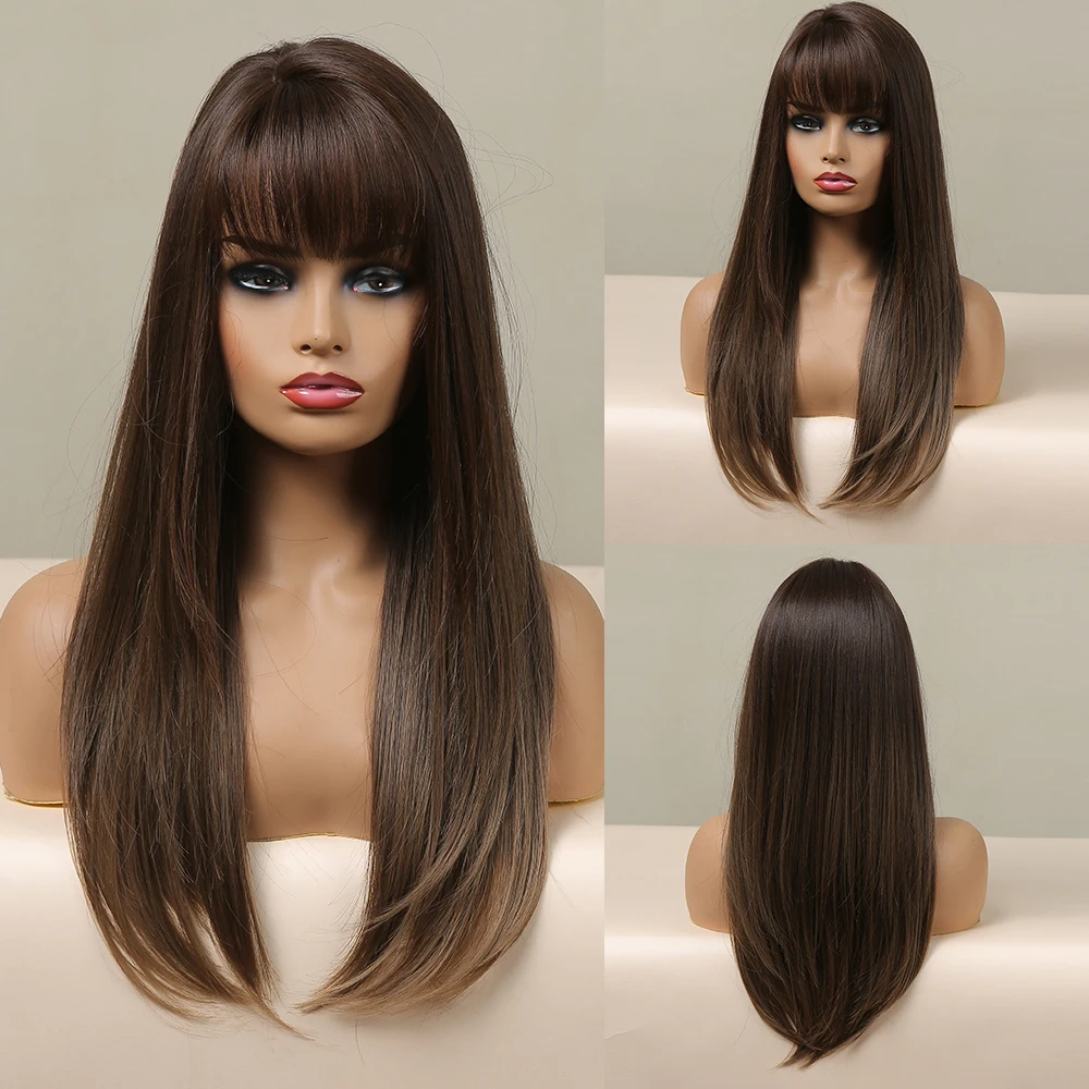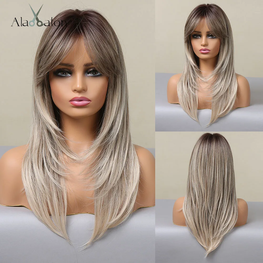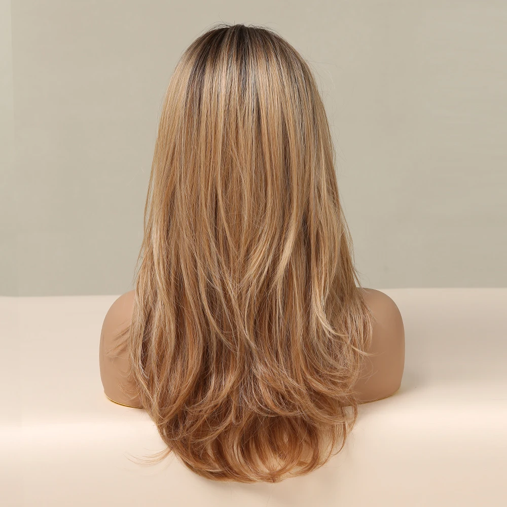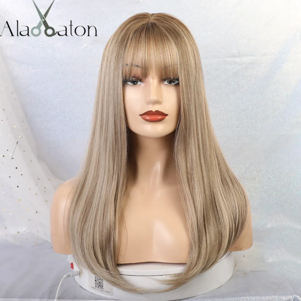 Длинный натуральный волнистый парик ALAN EATON для женщин, черные, коричневые, золотые, светлые синтетические парики с челкой, термостойкие волосы для косплея