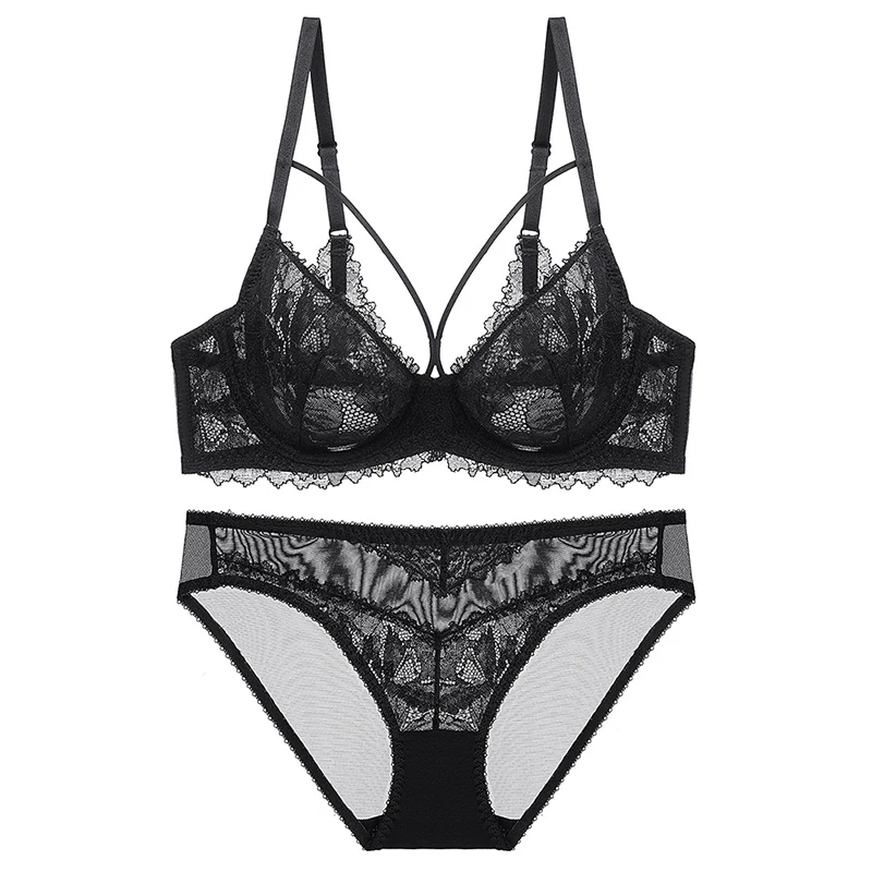 Сексуальный французский кружевной ультратонкий прозрачный бюстгальтер и трусики, комплект нижнего белья с пуш-ап, женское нижнее белье, женское белье, чашка A, B, C, D, E, 95D, 95D