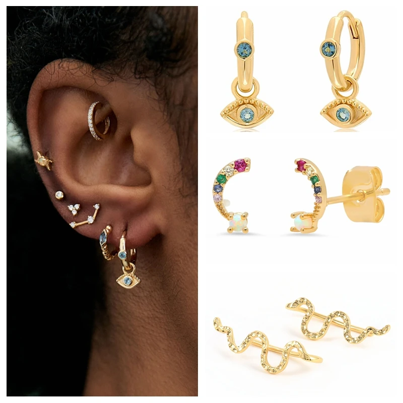 CANNER 1 пара серьги-кольца медные INS геометрические змеиные серьги сглаза для женщин мужчин Цветной циркон