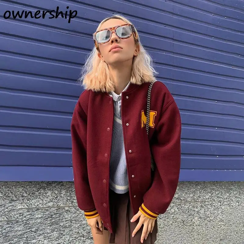 Женская куртка-бомбер y2k, брендовая одежда, однобортное бейсбольно...