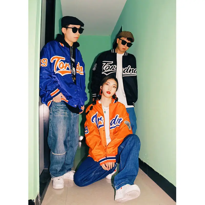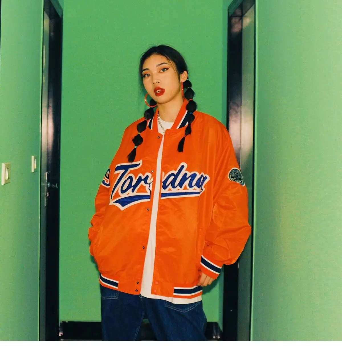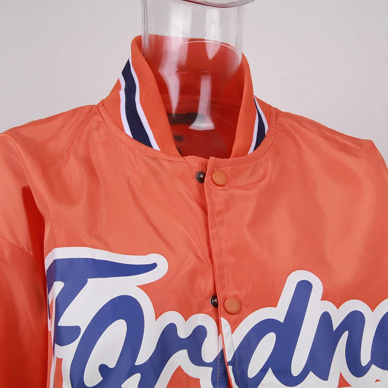 Женская куртка-бомбер с круглым вырезом в стиле хип-хоп, модная однобортная бейсбольная куртка с вышитым принтом, одежда с длинными рукавами34 долларов США/Шт/Лот 1