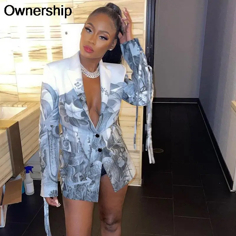 Женский новый блейзер с принтом в виде галстука-красителя, женский осенне-зимний облегающий пиджак с длинным рукавом и кисточками, тонкий модный офисный женский костюм28 долларов США/Шт/Лот 1