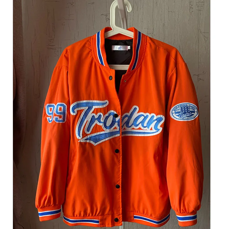 Винтажная Оранжевая Куртка-бомбер с вышивкой, осень 2021, бейсбольная куртка в гонконгском стиле с надписью, повседневная куртка-бомбер большого размера с длинным рукавом, кардуган