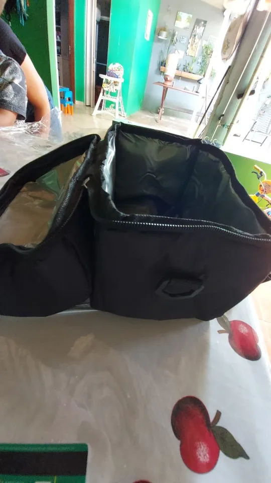 Качество хорошее. Перегородка между крышкой и нижним отделением съёмная на молнии. Изнутри гладкий непромокаемый материал. Пришла вовремя. Запах как у любой новой клеёнки , небольшой. Продавца рекомендую.
