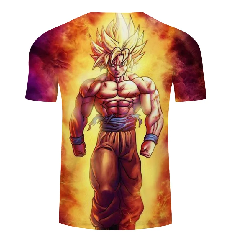 Футболка с 3D-принтом Гоку, с круглым вырезом, с коротким рукавом