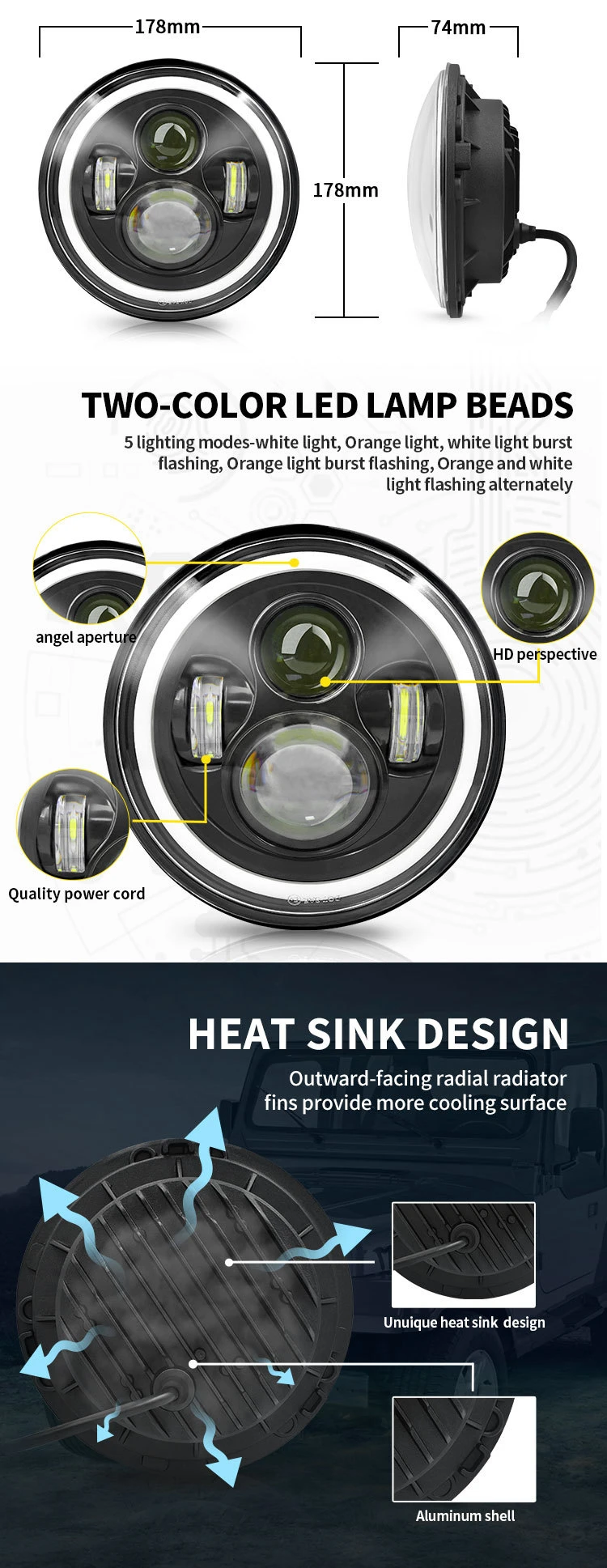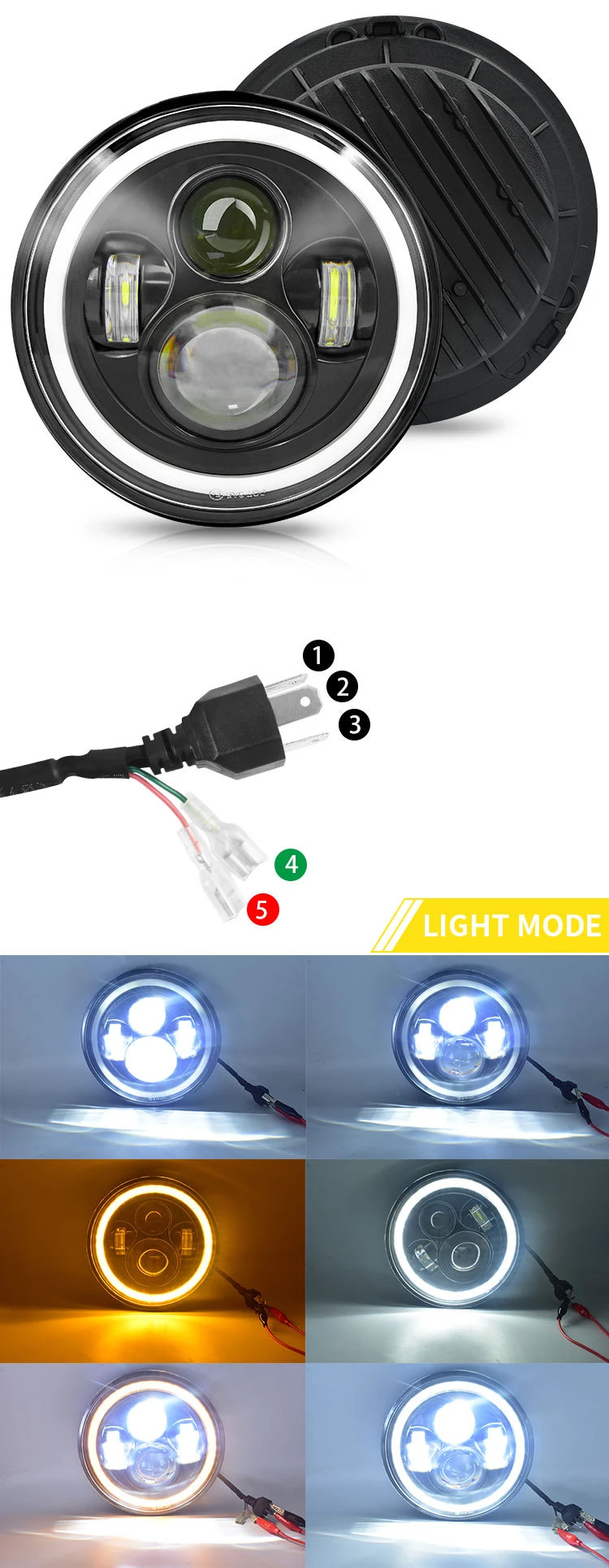 7 дюймовый светодиодный фар с Halo Кольцо янтарь DRL поворотов 120 ...