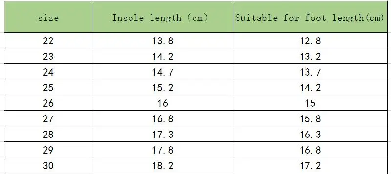 Дорогие друзья:Поскольку все размеры детской обуви отличаются, при заказе детской обуви вы должны соответствовать нашим размерам и внутренней длине. Согласно длине стельки. (длина стельки = длина стопы + 1 см)Размер не стандартный, просто удобно для вас сделать заказ.Удобная длина стопы составляет около 1 см.И из-за длительного времени доставки ребенок быстро вырастет, пожалуйста, выберите обувь большего размера для вашего ребенка.Пожалуйста, выберите правильный размер.Вся обувь будет отправлена с пузырчатыми сумками, без коробок! Измерение выполнено ручным способом, возможно, 0,1-0,5 см; Она вполне допустима приПримечание: эта обувь не имеет переключателя, она будет светиться, когда ребенок будет ходить. Это не зарядка через USB, только встроенный аккумулятор, когда аккумулятор разрядится, он не будет сиять.