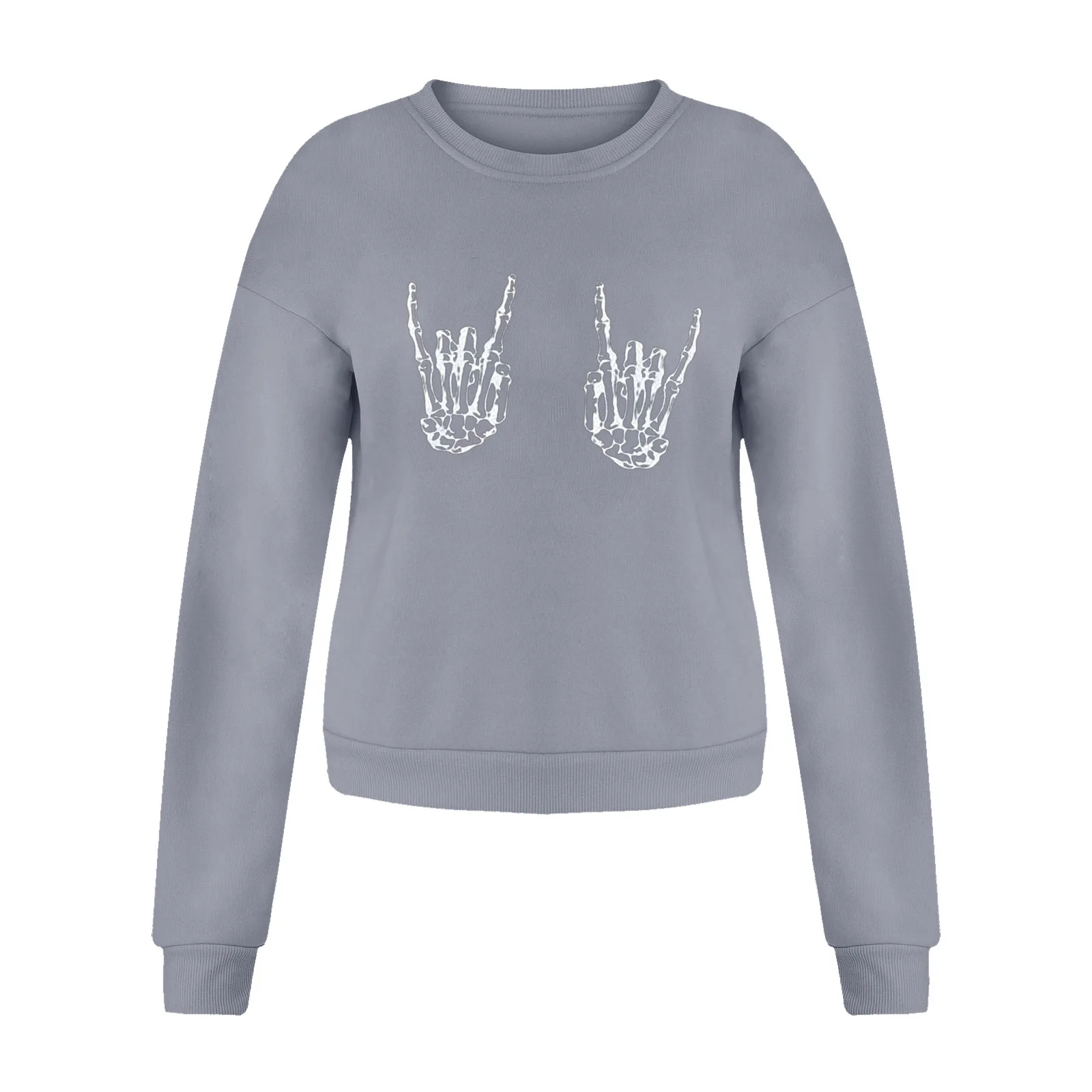 Женский свитер с принтом черепа, Кофта большого размера с длинным рукавом и круглым вырезом в Корейском стиле