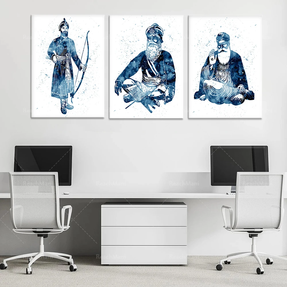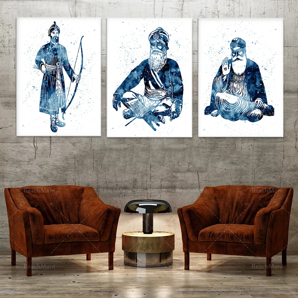 Сикх мастер фрески, 3 набора печати, картины ГУРУ НАНАК, картины гуру гобинга Сингха, гуру Баба глубокий Сингх декоративное искусство