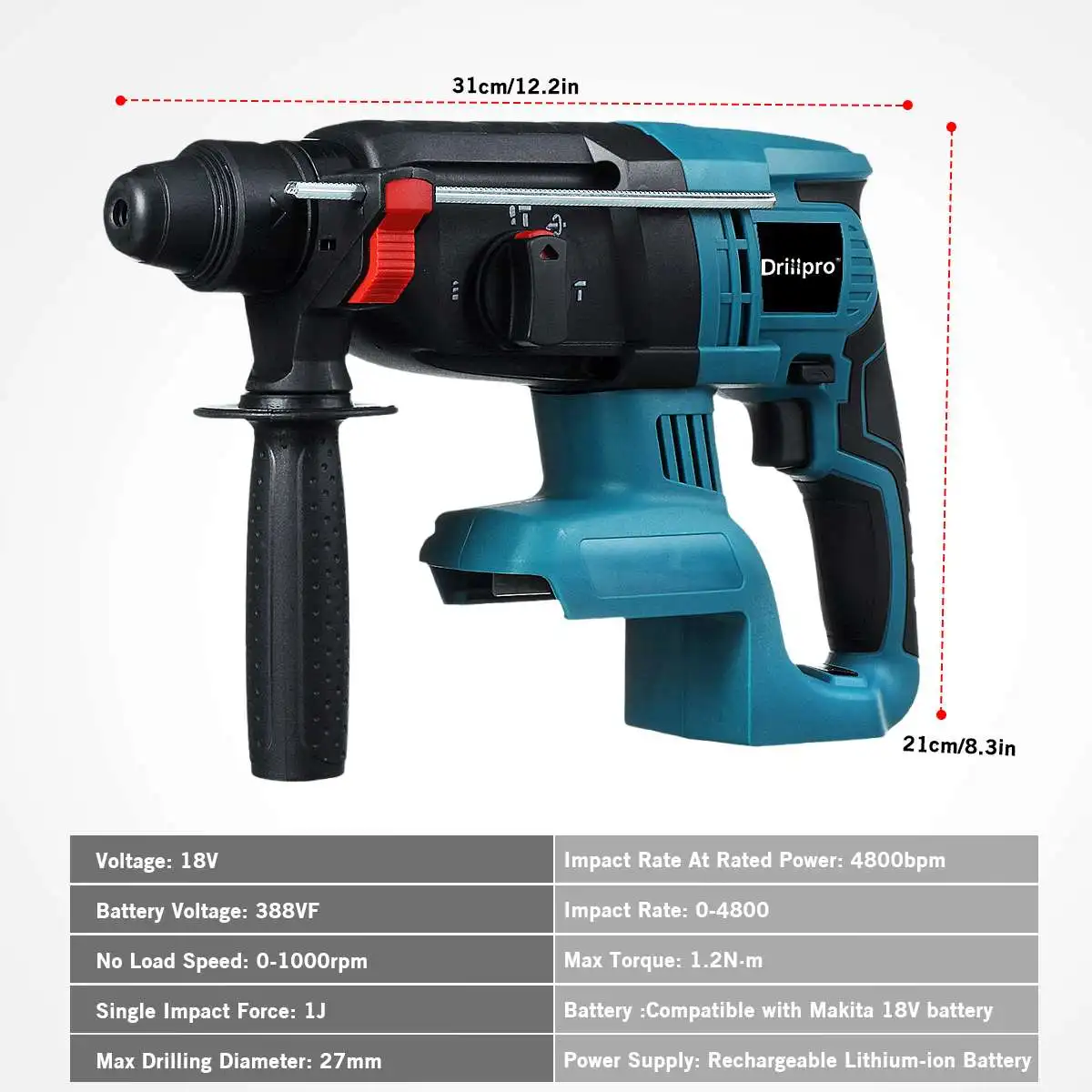 Drillpro бесщеточная электрическая дрель, 4 функции, многофункциональный молоток 27 мм, ударная дрель для батареи Makita 18 в