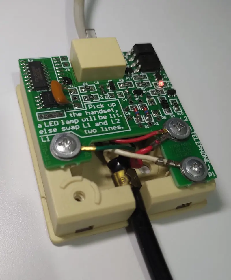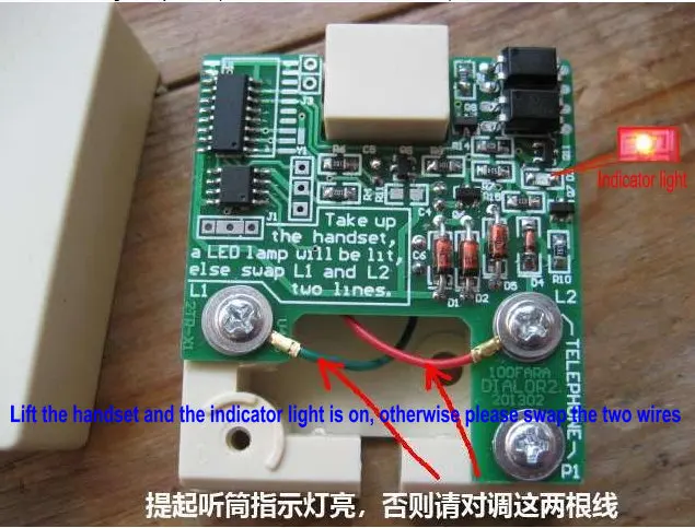 После подключения линии в соответствии с приведенной выше таблицей, после поднятия ручки телефона будет включен световой светильник преобразователя (если светильник индикатора не включен, для переключения проводки L1 и L2 см. Следующую цифру) И вы можете набрать телефон. Каждый раз, когда вы набираете, вы слышите тот же двухцветный сигнал в наушнике, что и в современном сенсорном телефоне.