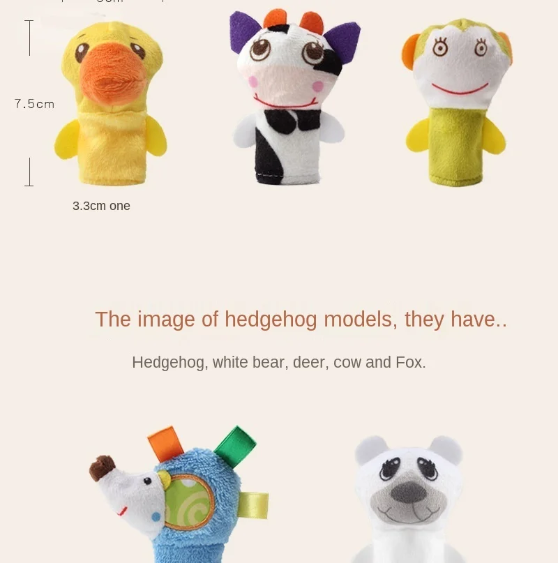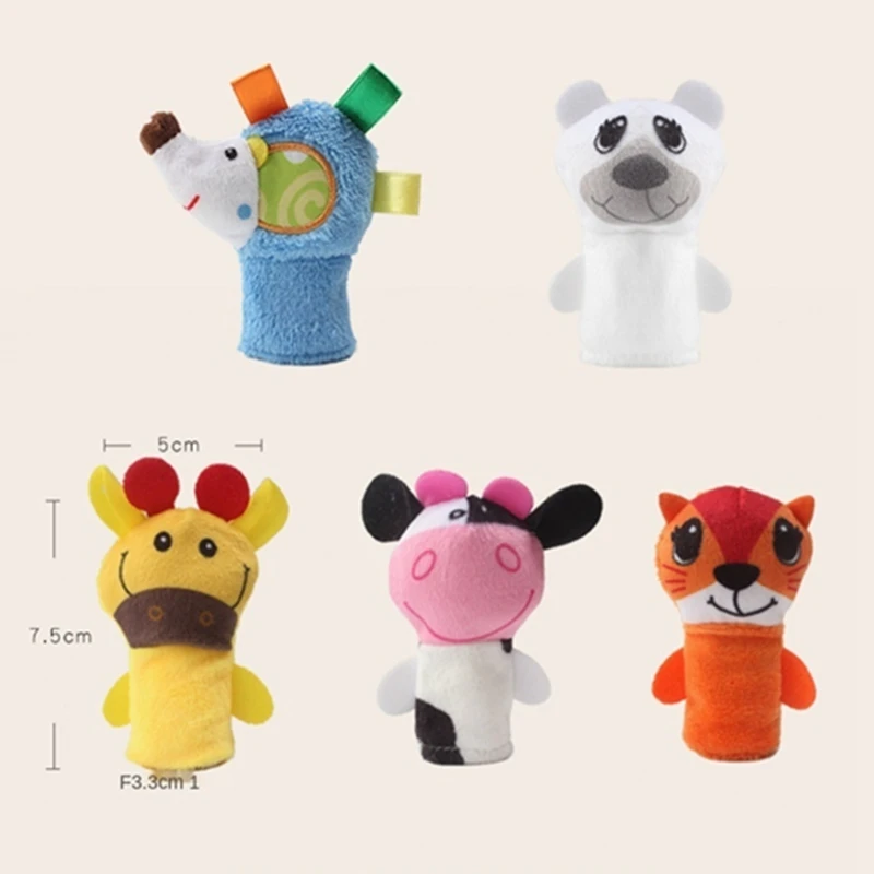 Плюшевая кукла на палец, с мультяшными животными, 5 шт.лот