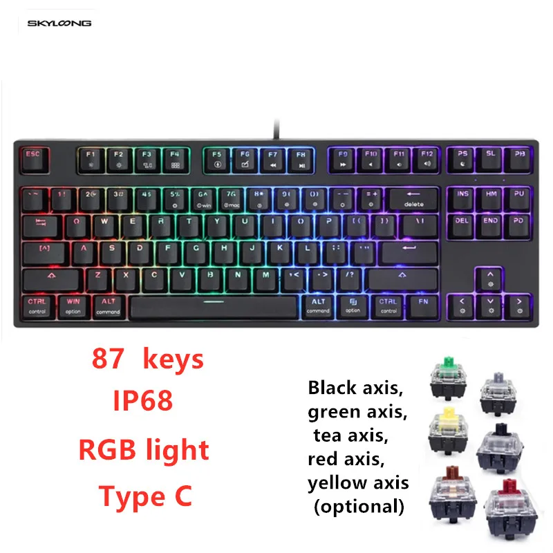 Проводная Механическая игровая клавиатура SK87, оптический переключатель Gateron с горячей заменой, 87 клавиш, RGB-светодиодный ОД, программируемый для ПКMac