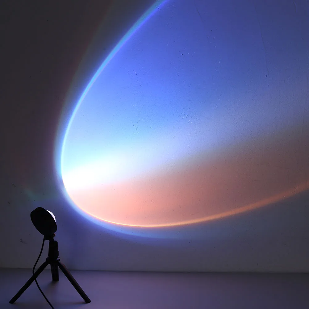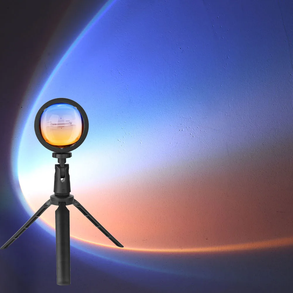 Атмосферный светильник-тренога, USB, горизонтальный, желтый, синий, двухцветный, закат, проекция, Ночной светильник, рассвет, синяя береговая линия, пляжный светильник, лампа