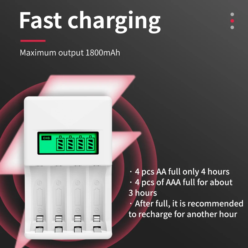 Интеллектуальное зарядное устройство с ЖК-дисплеемПолностью совместим с аккумуляторами AA/AAA