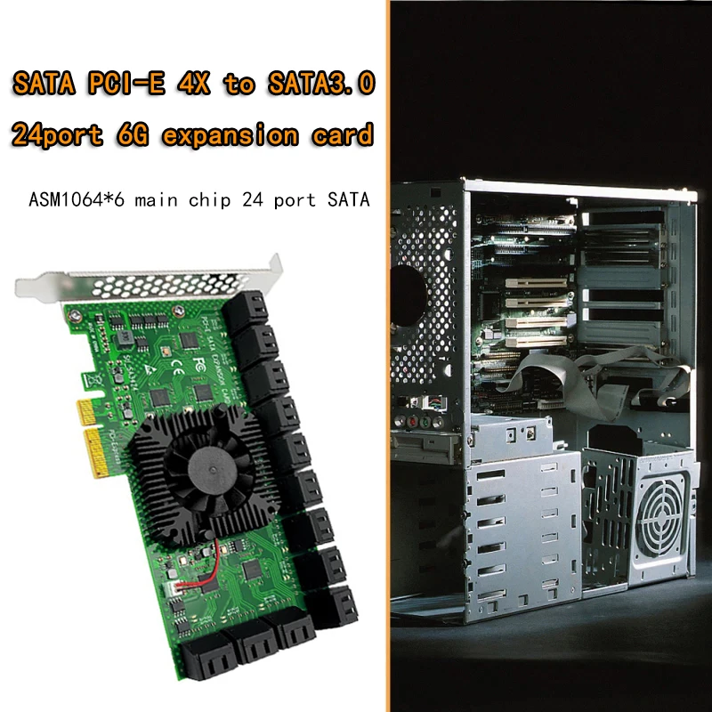 Карта PCIe SATA для майнинга Чиа, 24 порта, 6 Гбитс, адаптер SATA P...