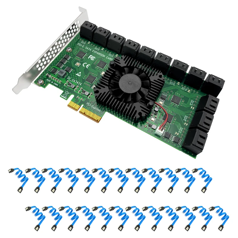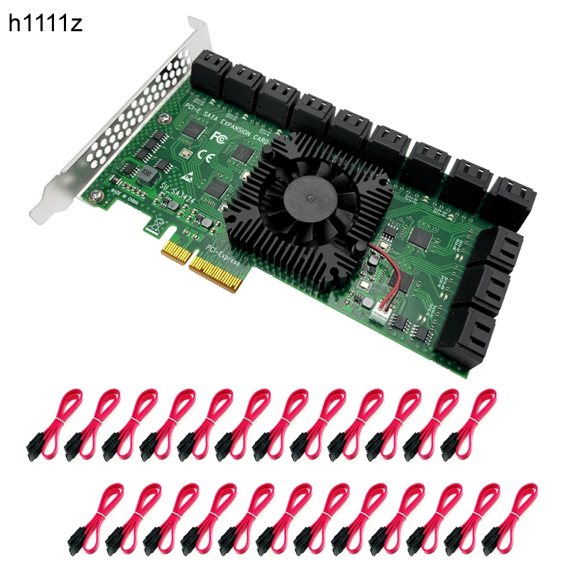 1 x карта PCIE 4X на 24 порта SATA3.0 для добычи ЧИАКабель SATA3.0 24 шт.