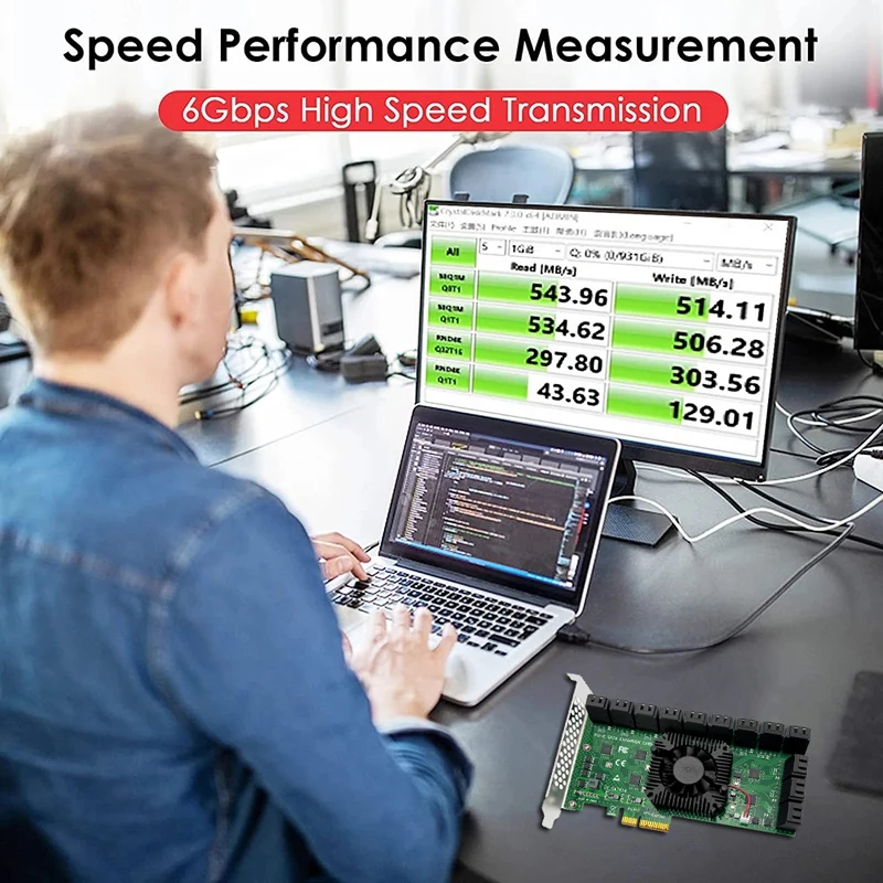 Переходник для майнинга Чиа PCIe на 24 порта SATA 3,0 6 Гбитс SSD а...