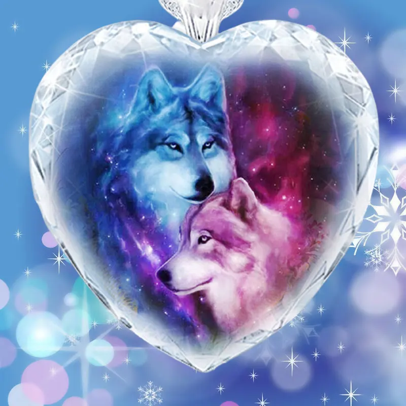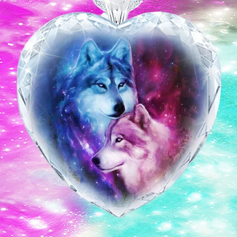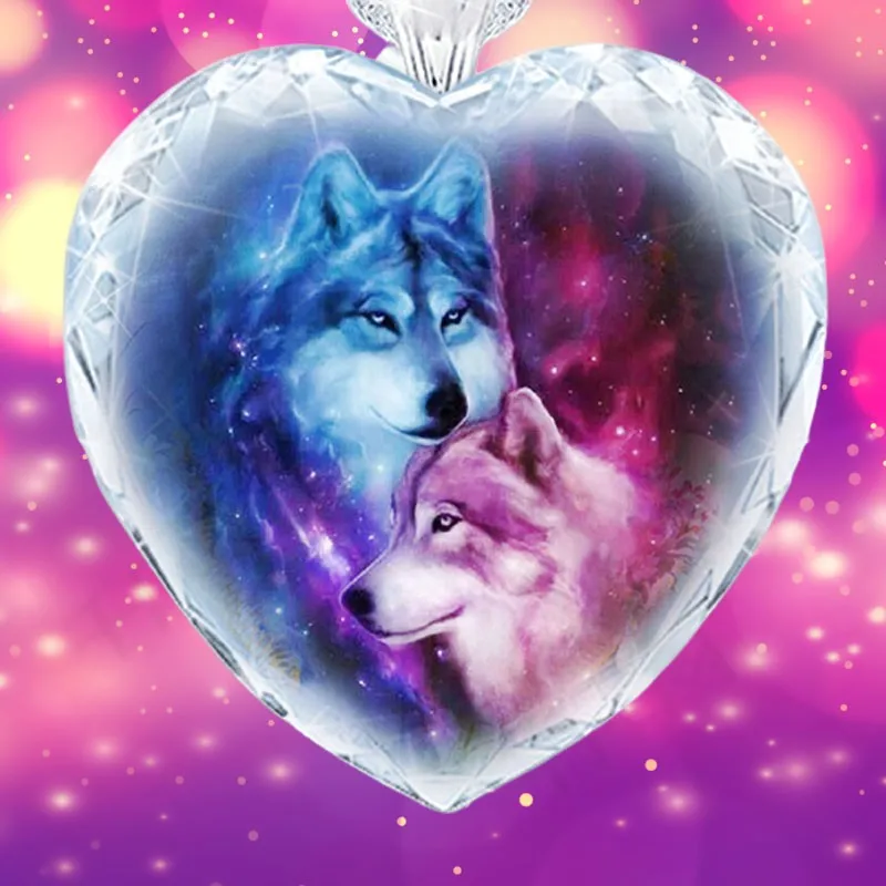 Ожерелье в форме сердца, Роза фиолетовые Кристальные украшения, волк, индивидуальное ожерелье для вечеринок, мужское и женское ожерелье, ювелирные изделия, подарки