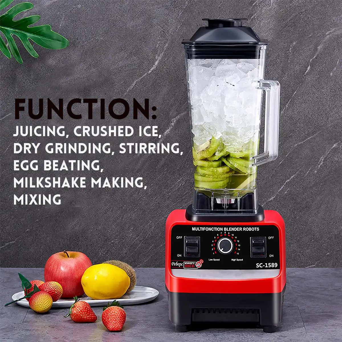 Спецификация:Состояние на 100% абсолютно новыйТип изделия: SC-1589 блендерНапряжение: 220 ВМощность: 4500 ВтЧастота: 50 ГцСкорость: 32000 об/минПоложение шестерни: 1-15 передачЕмкость: 2500 млМатериал: акрил + резина + лезвие из нержавеющей сталиЦвет корпуса чашки: ПрозрачныйРазмер: 50x18 смВилка: штепсельная вилка европейского стандартаПрименимый номер: 4-5 человекФункция: соковыжималка, измельченный лед, сухое измельчение, перемешивание, взбивание яиц, молочный коктейль, смешивание