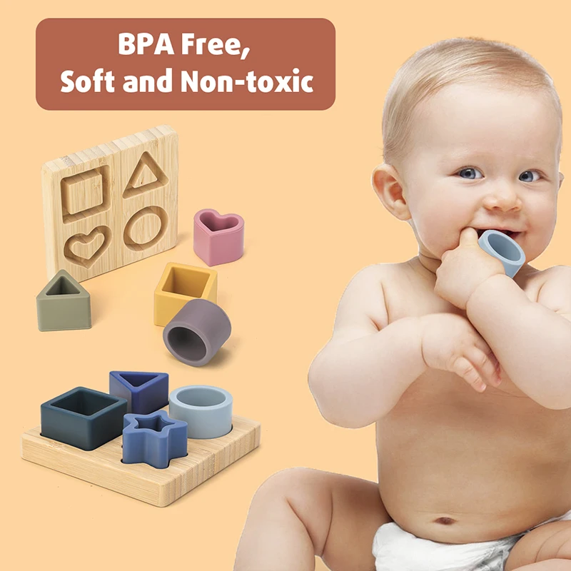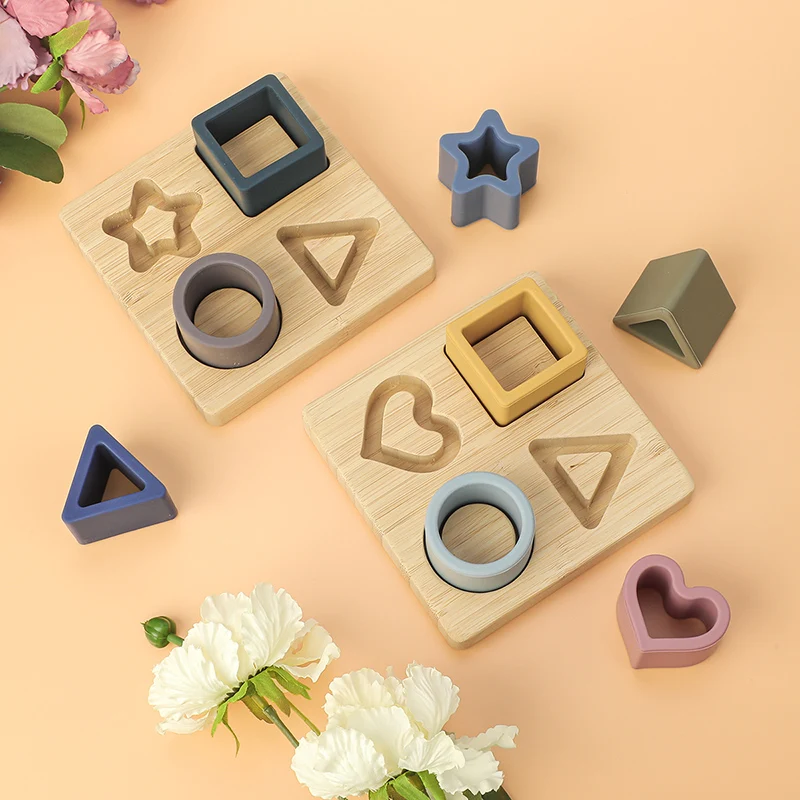 TYRY.HU 5 шт. силиконовые строительные блоки деревянные геометрические натуральные Прорезыватели Силиконовые мягкие складные развивающие игрушки с памятью