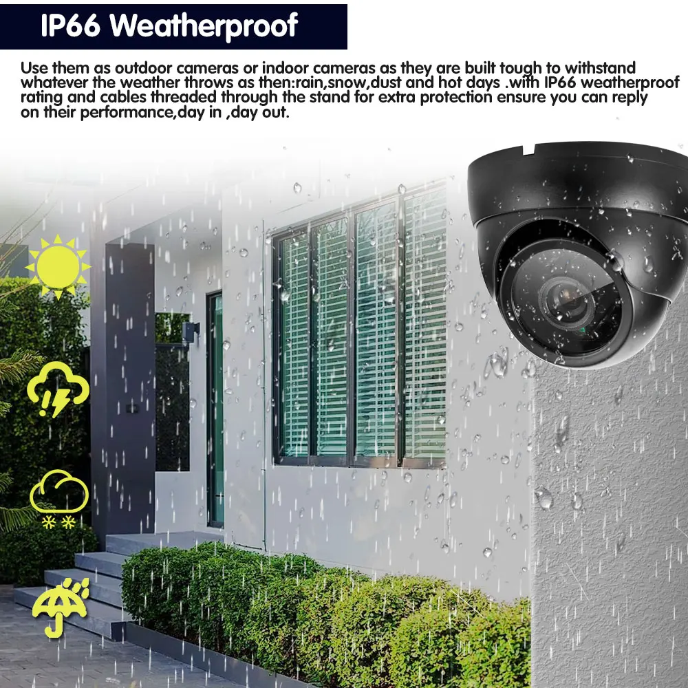 Используйте их в качестве наружных камер или внутренних камер, так как они построены жестко, чтобы выдерживать любую погоду: дождь, снег, пыль и жаркие дни. С защитой от атмосферных воздействий IP66 и кабелями, проходящими через подставку для дополнительной защиты, гарантируем, что вы сможете ответить на их производительность, день в день. Наша камера имеет сверхпрочный металлический корпус, профессиональный IP66, устойчивый к атмосферным воздействиям, обеспечивая стабильную производительность как внутри, так и снаружи.