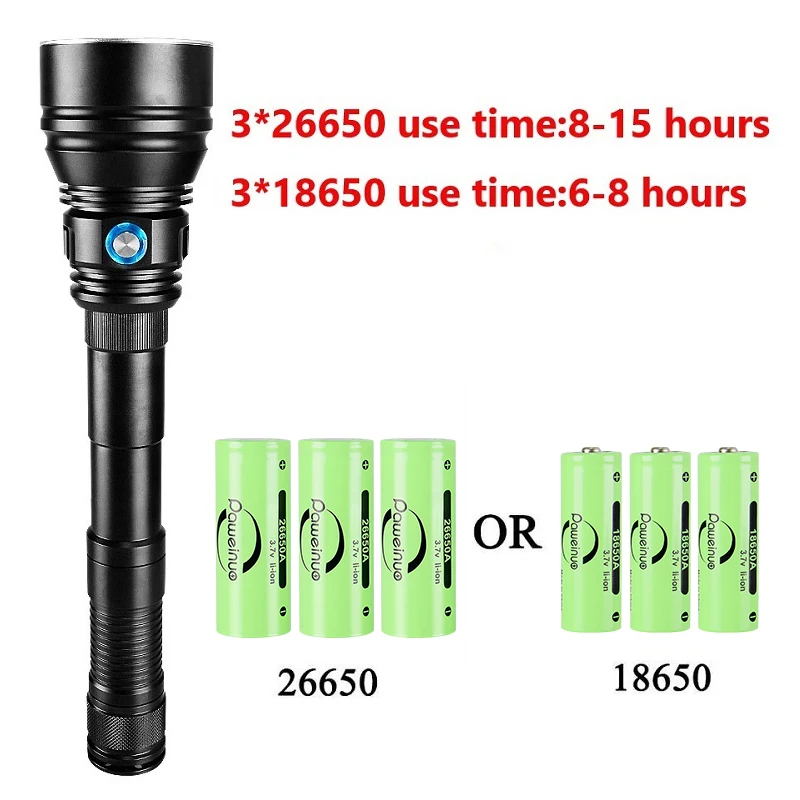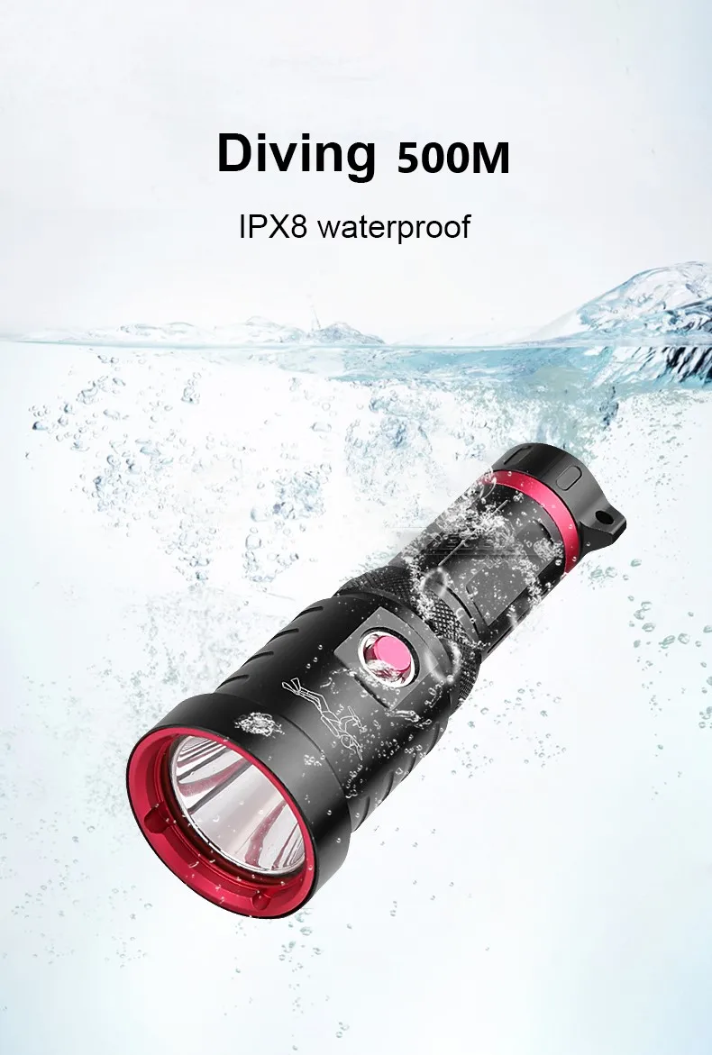 Новейший мощный фонарик для дайвинга XHP160 с использованием аккумуляторов 3*18650 или 3*26650, водонепроницаемость до IPX 8, ультра-дальнее освещение 800 метров, чтобы обеспечить вам Ультра-яркий белый свет ночью и во время дайвинга. Срок службы> 100, X00 часов.