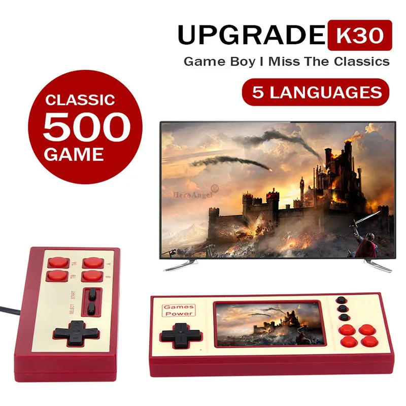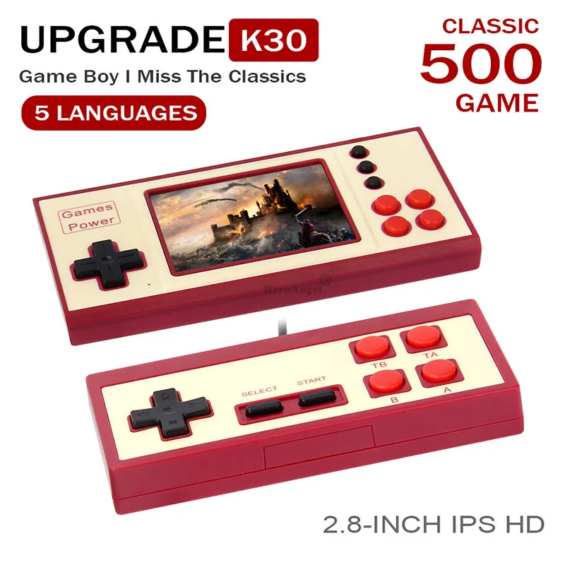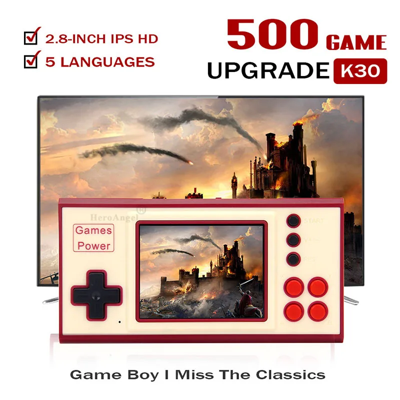 Портативная игровая консоль K30, портативная игровая консоль для классических видеоигр с AV-выходом, цветной ЖК-дисплей 3,2 дюйма, 500 встроенных игр