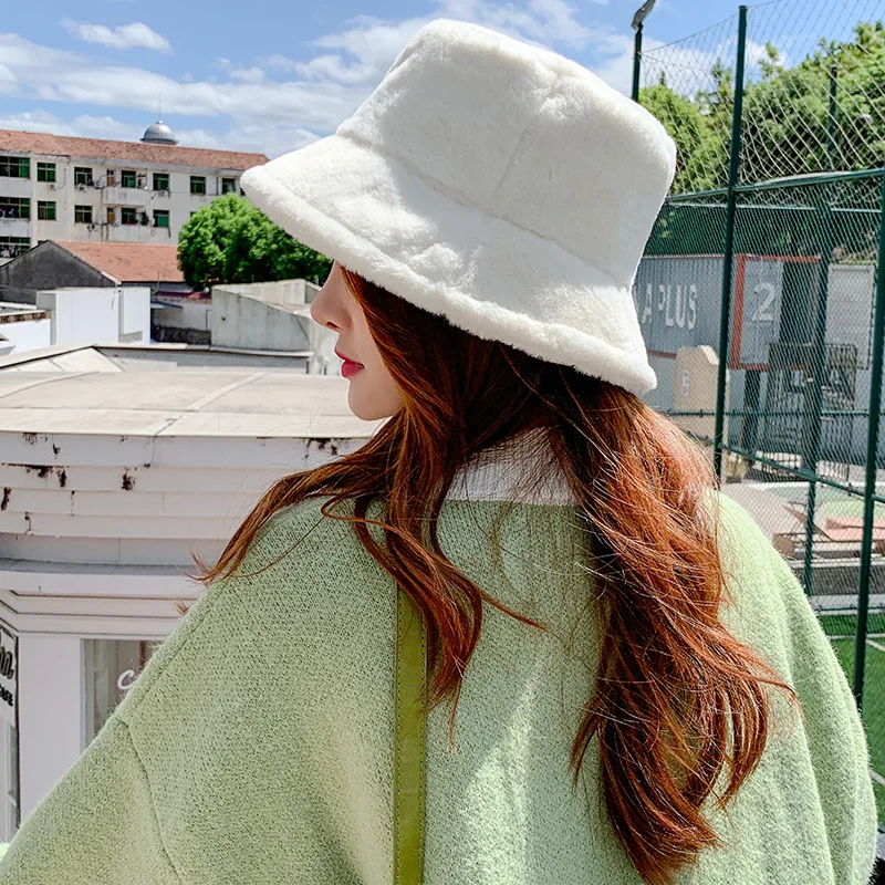 Весенне-осенняя однотонная женская шляпа-ведро, модная плюшевая Панама, кепка для дам, уличная Солнцезащитная шляпа для рыбаков, солнцезащитные шапки