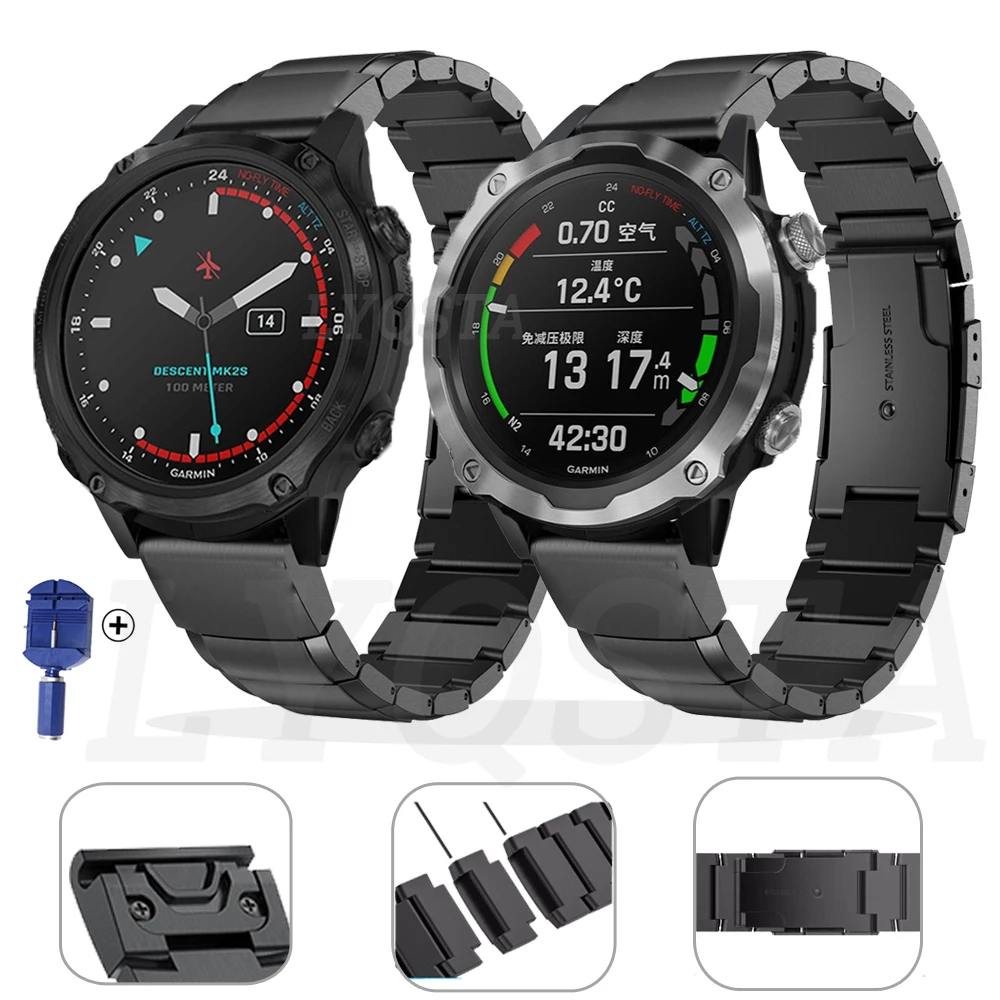 Ремешок из нержавеющей стали для наручных часов Garmin Fenix 5 5X 6 6xpro 3HRSolarEnduroспуск MK1 Mk2 Mk2i