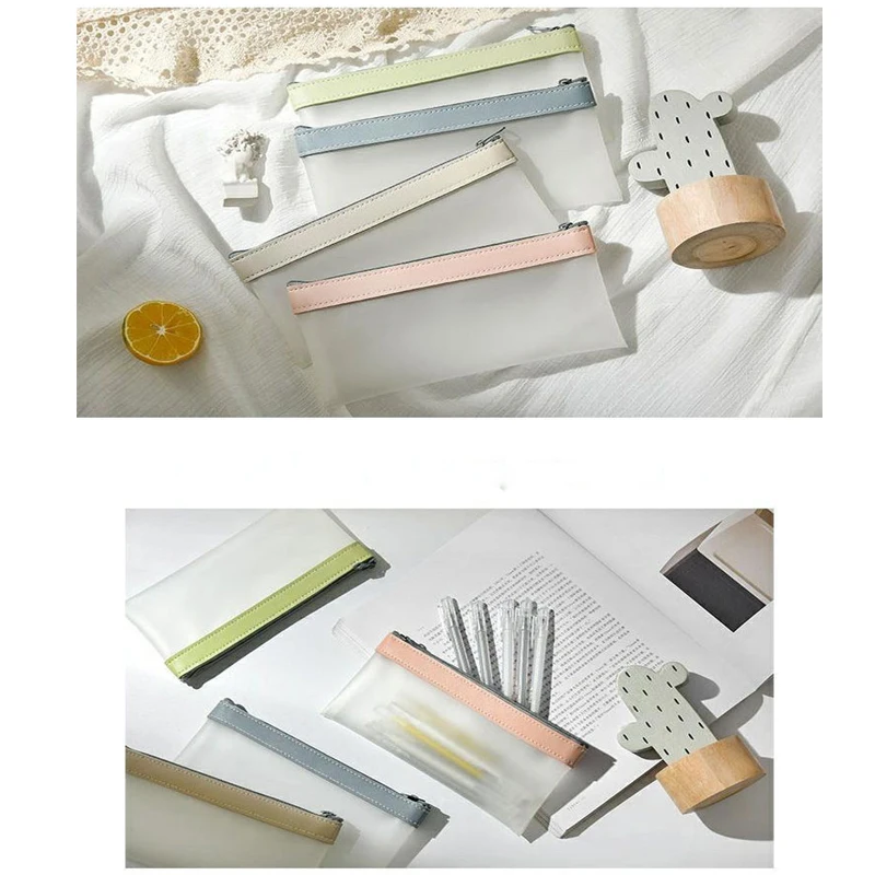 Простой Прозрачный матовый чехол для карандашей, офисный студенческ...