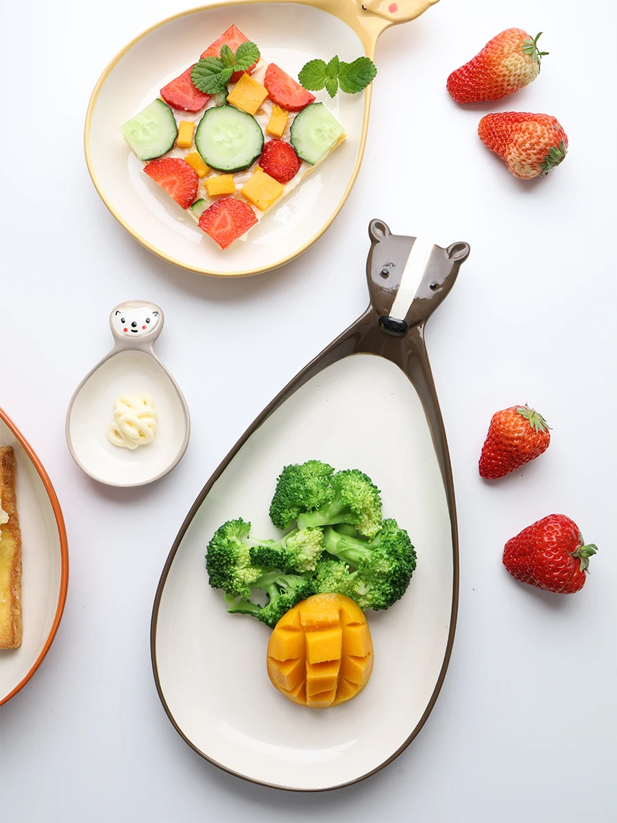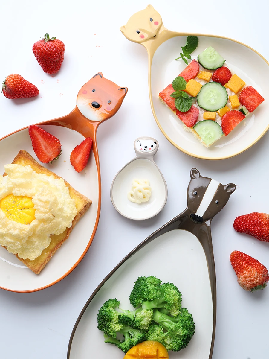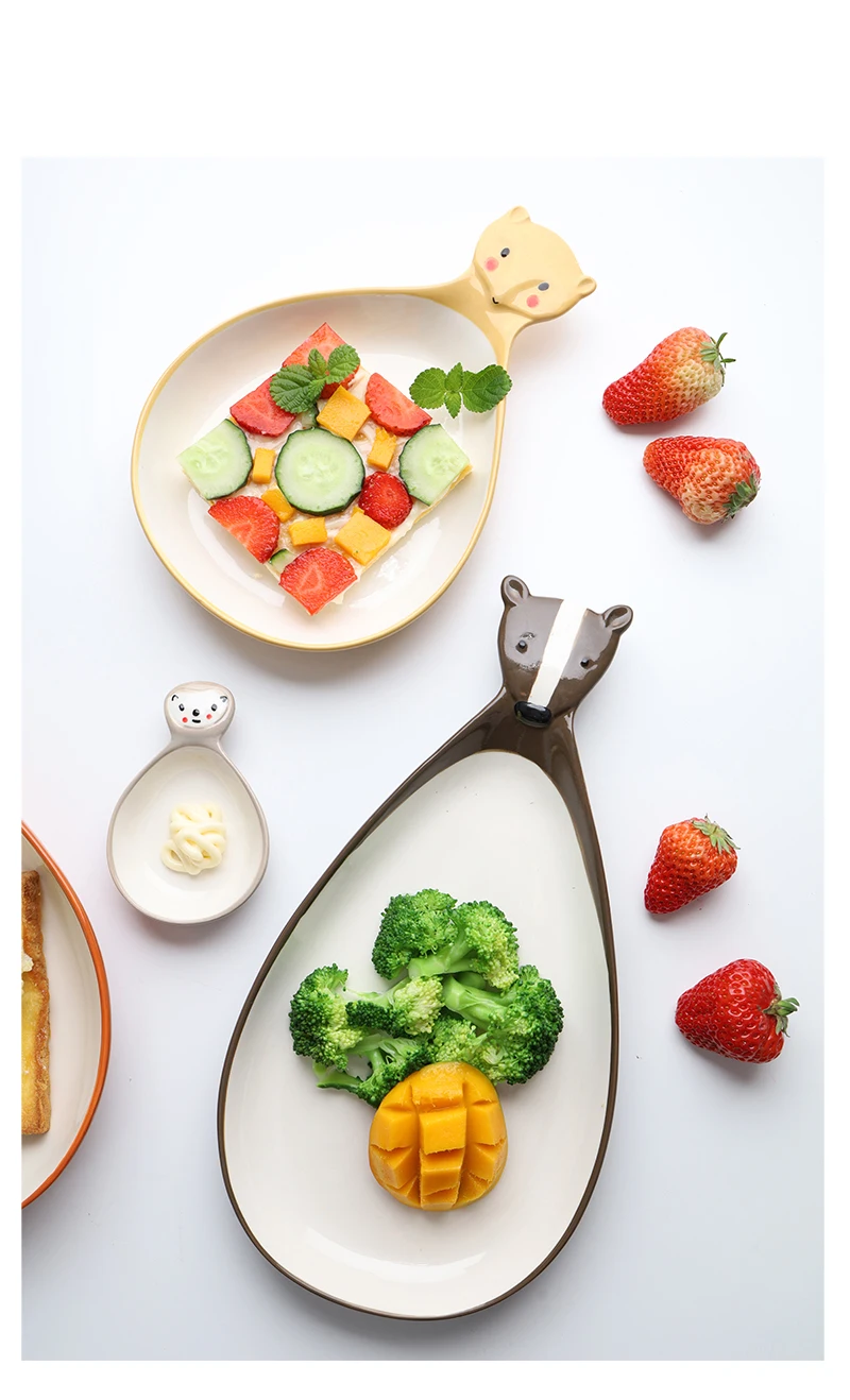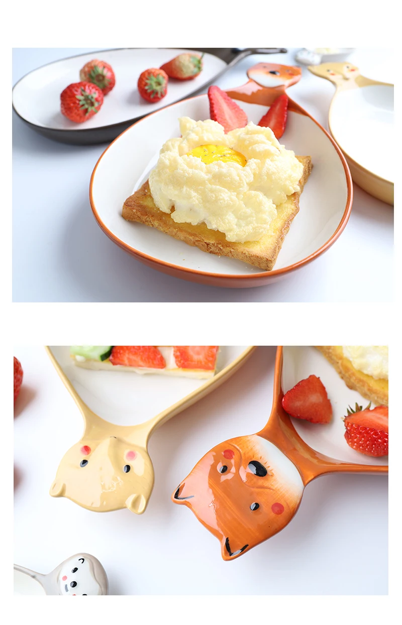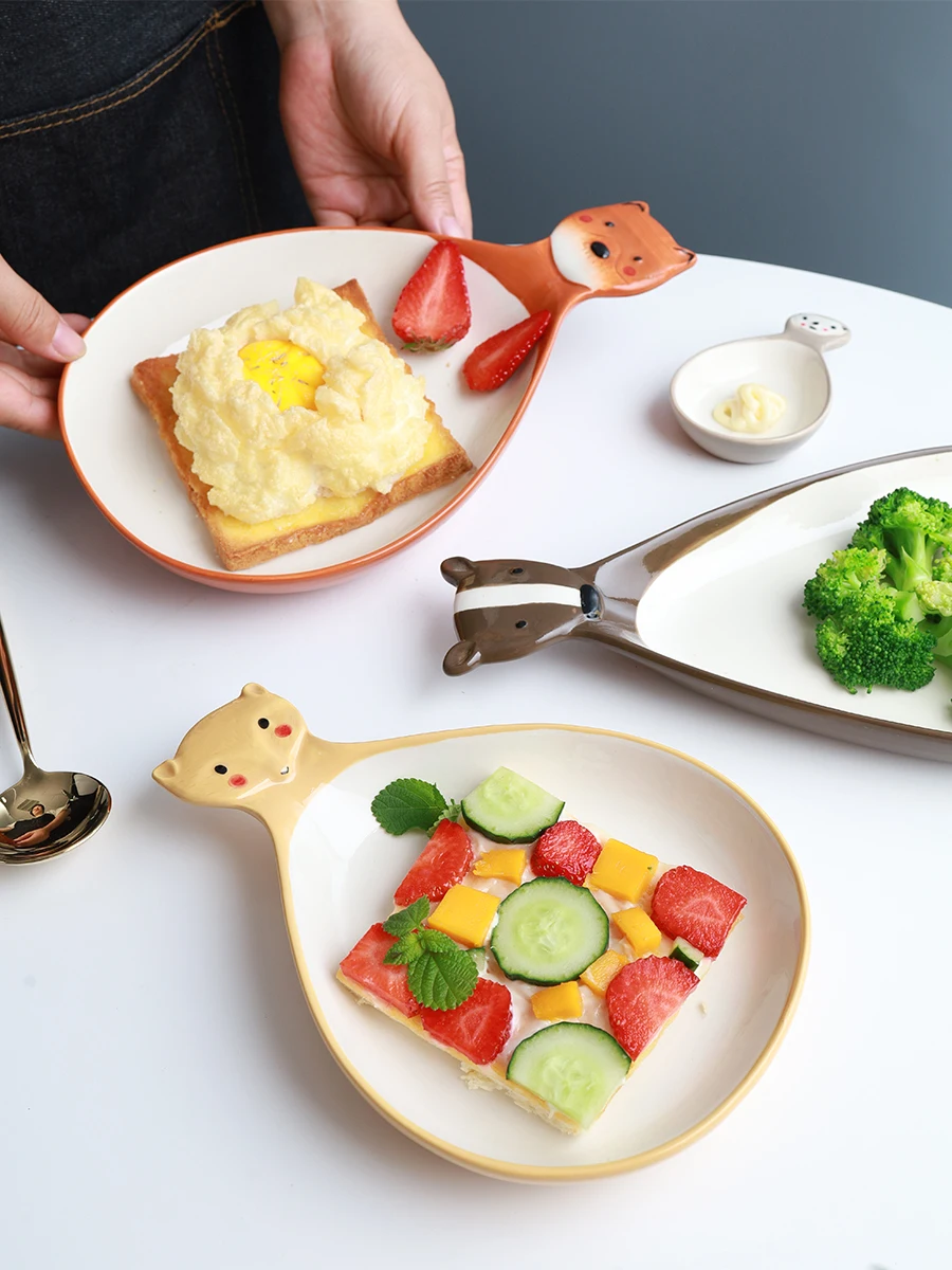 Керамическая обеденная тарелка с животными в Корейском стиле, устойчивая к высоким температурам, десертная тарелка, неглазурованная посуда для детей