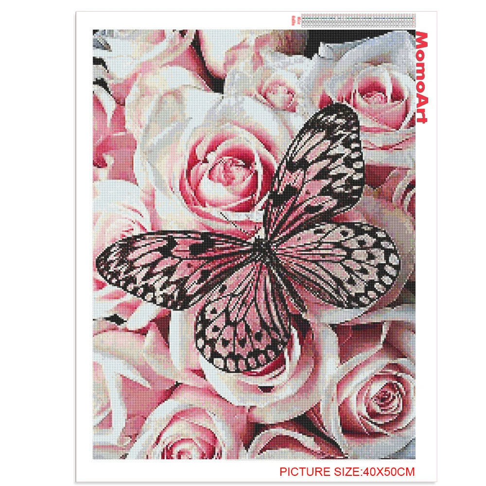 Квадратная Алмазная вышивка MomoArt с изображением животных, вышивка крестом, цветы, рукоделие, мозаика, сделай сам, искусство стен, бриллиантовая мозаичная бабочка