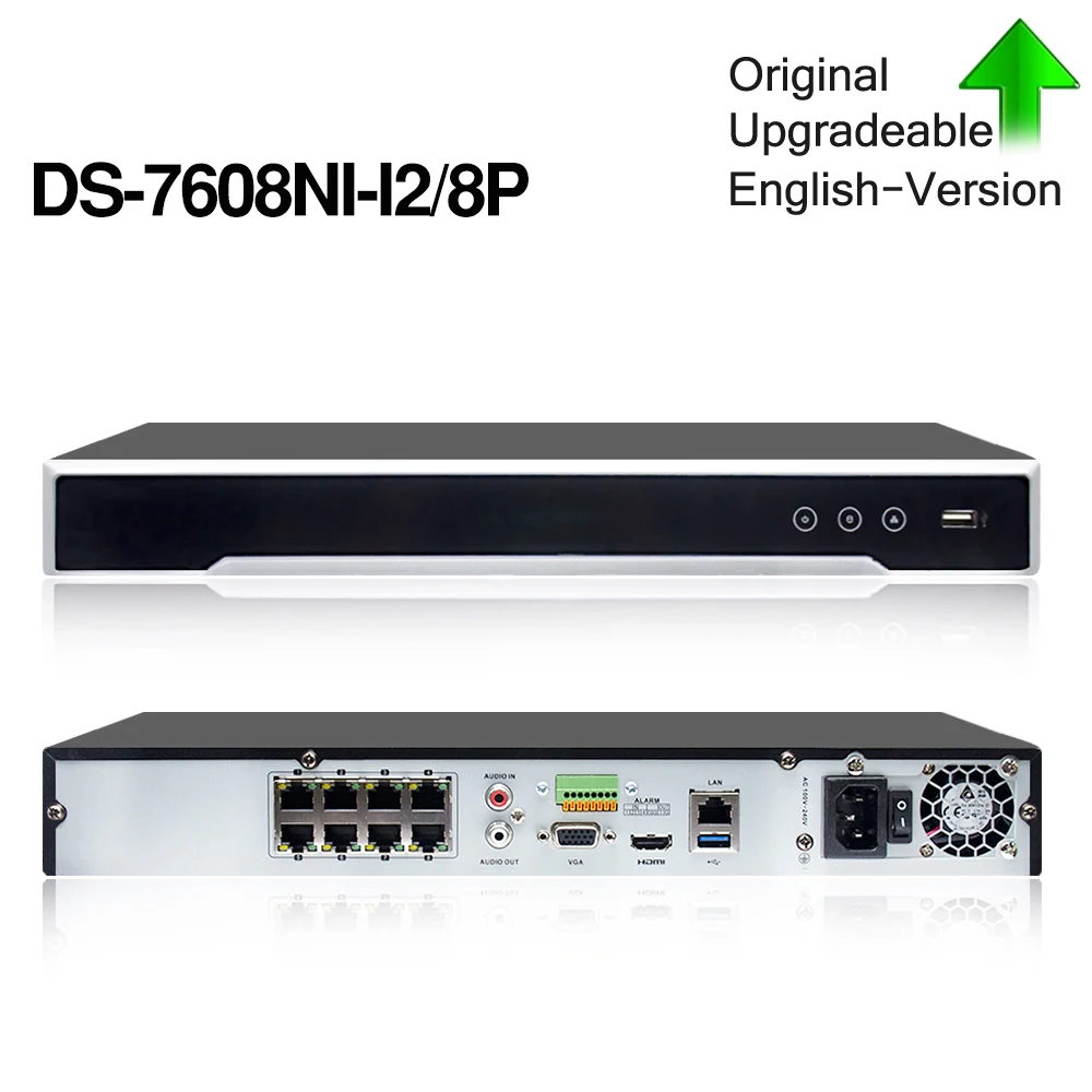Оригинальный Сетевой видеорегистратор Hikvision, 8 каналов, 8 POE DS-7608NI-I28 P, сетевой видеорегистратор, 12 Мп, макс. 2 SATA