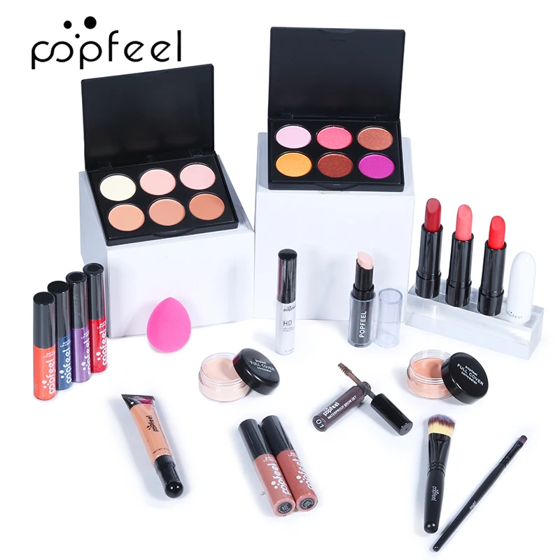 Набор для макияжа POPFEEL, 20 шт., все в одном, для начинающих, искусственные тени для век, тушь для бровей, консилер, набор косметики, Подарочная коробка, пакет