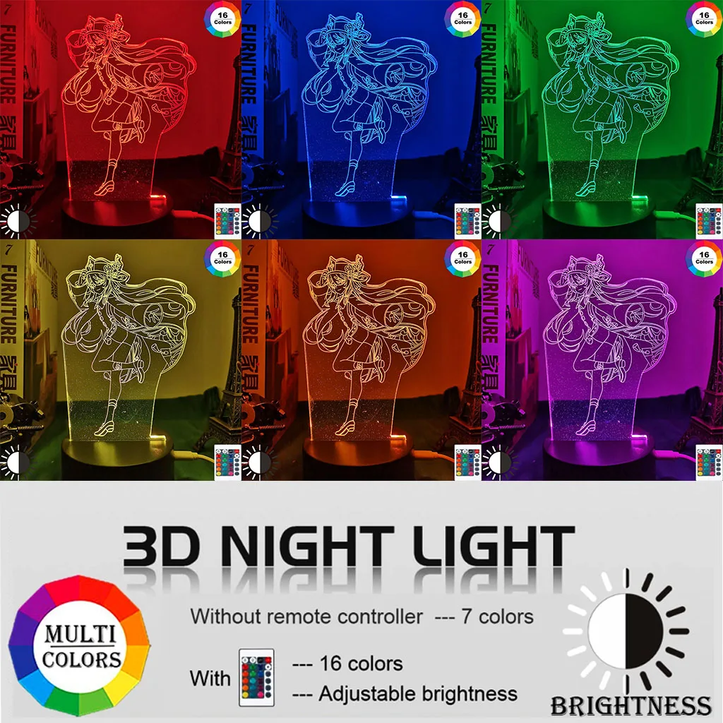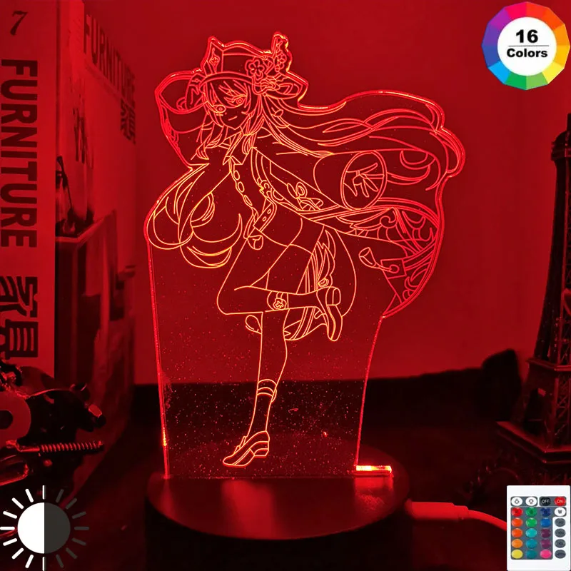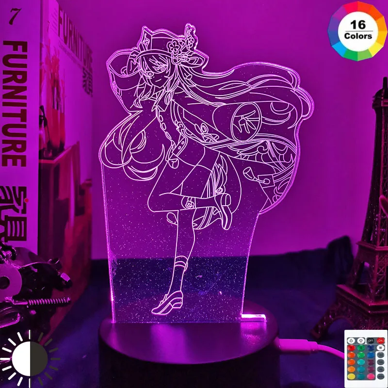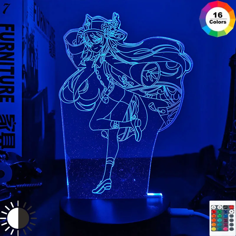 Ударная 3D иллюзионная лампа Genshin, светодиодный ночсветильник, популярная игра, фанаты Ху Тао, креативные подарки для детей, настольные декоративные лампы, вспышка для комнаты