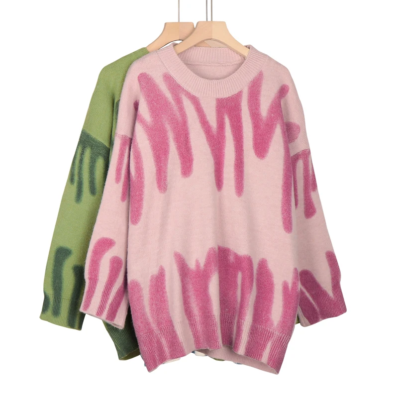 Женские объемные пуловеры с рисунком, большие размеры, женская улич...